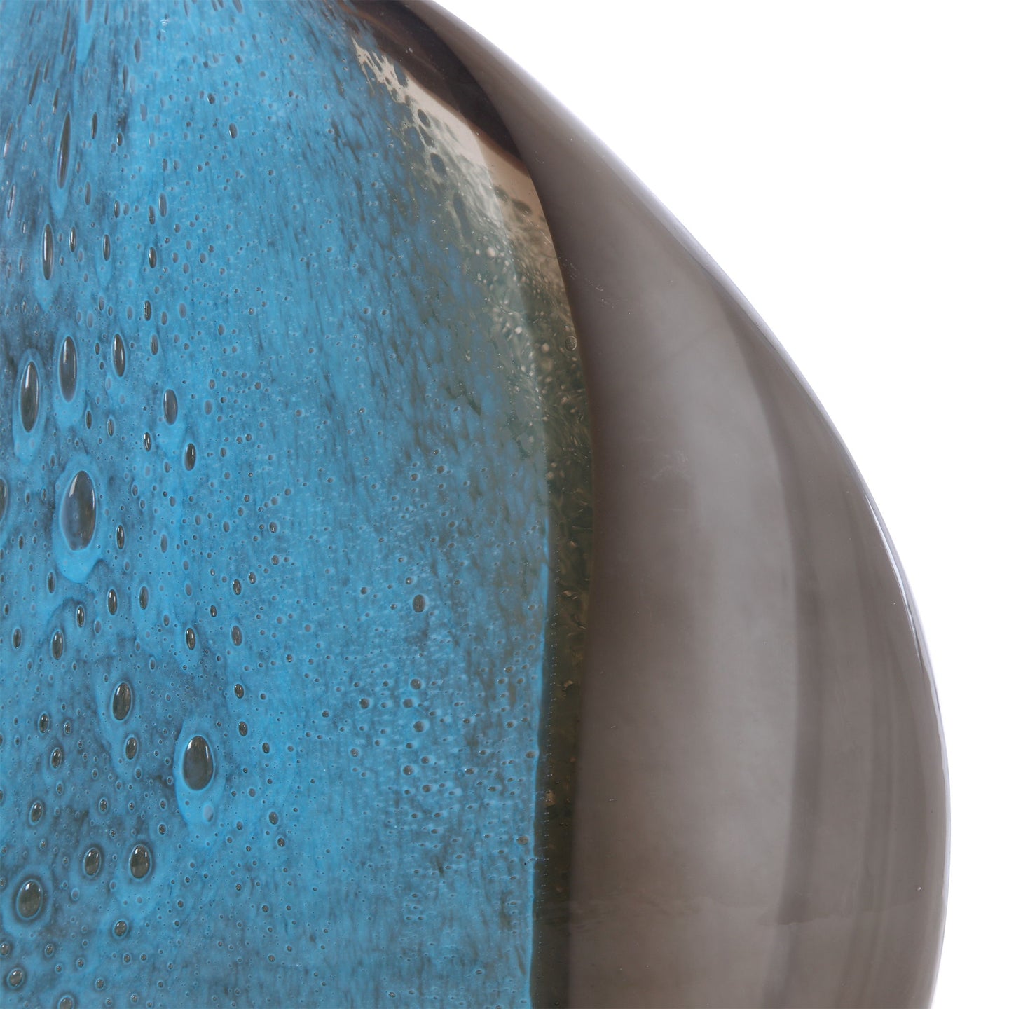 Set Of Two, Art Glass Vases Showcase Deep Cobalt Blue And Black Hues. Sizes: S-10x11x3, L-11x14x5Product Features
