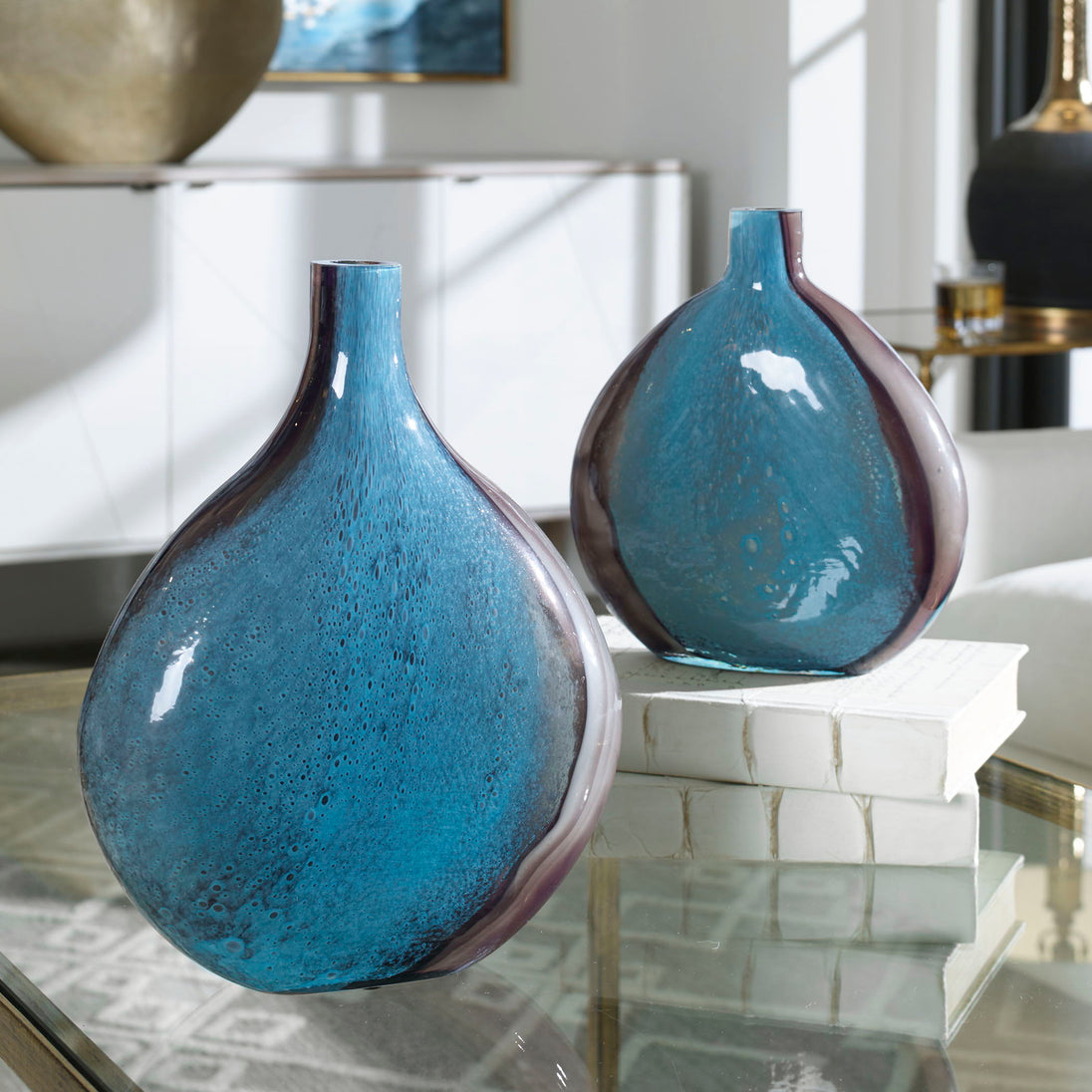 Adrie Art Glass Vases (Set of 2) Black & Blue