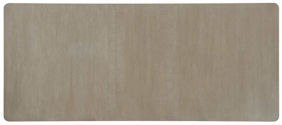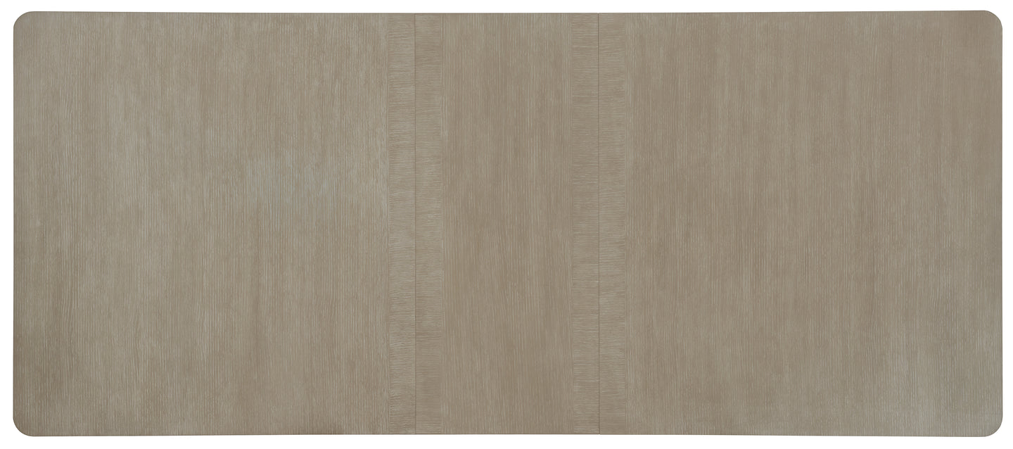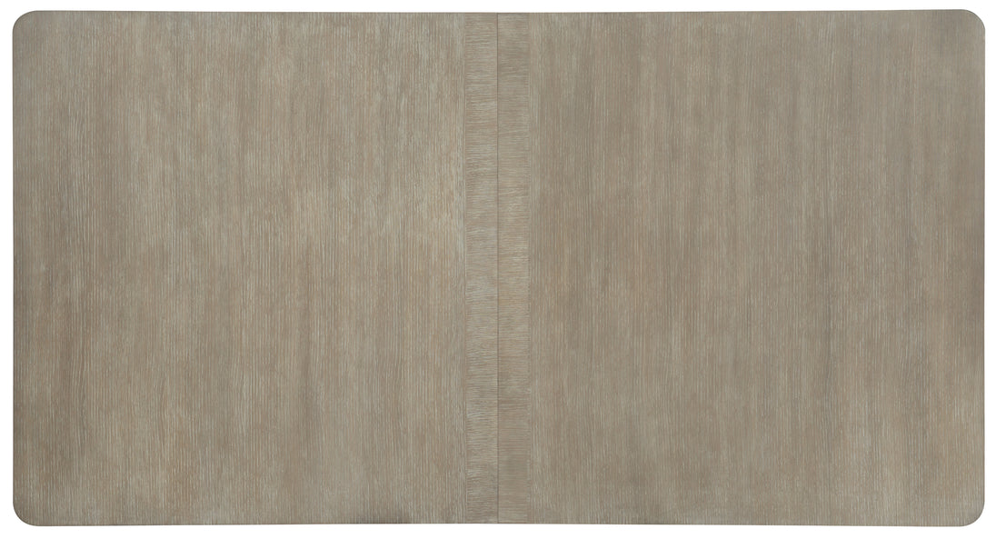 A neutral color palette and angular forms create a soft modern expression in the Affinity Rectangle Pedestal Dining Table. Crafted of Quartered Oak Veneers, the table has a tactile greige sand-blasted finish. With two 18-inch leaves, the table extends to 114 inches with both leaves in place and will accommodate 6 guests without leaves, 8 guests with one leaf and 10 guests with both leaves. A three-piece geared wood table slide allows you to add or remove leaves.