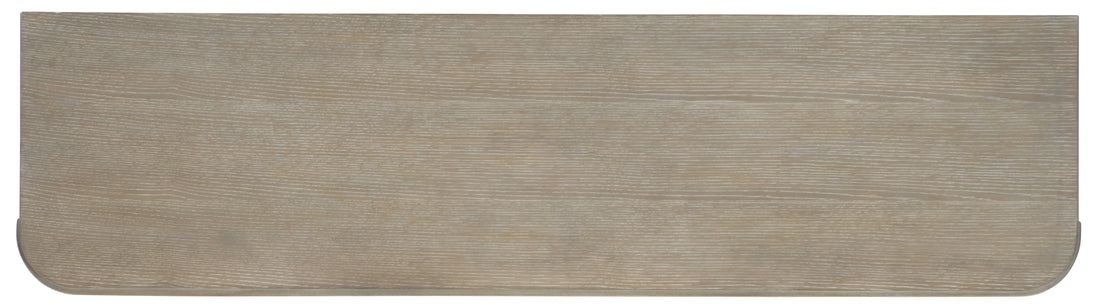 Soft, rounded forms combine with sand-blasted greige and antique white finishes to create an inviting transitional boutique collection in Affinity. The main finish for the 20-piece collection of bedroom, dining room, occasional, accents and home entertainment is a wire-brushed greige (gray/beige) on quartered white oak. Pewter and antique white hardware and soft linen fabrics add intrigue.