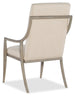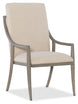 The Affinity Host Chair’s Quartered Oak Veneer frame has softly curving legs and a curved back for an inviting, soft silhouette. The greige sand-blasted finish complements the Kurtz Linen on the plush and rounded upholstered seat and back, offering a natural color palette and tactile appeal. The fabric is a polyester-linen blend.