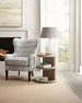 Soft, rounded forms combine with sand-blasted greige and antique white finishes to create an inviting transitional boutique collection in Affinity. The main finish for the 20-piece collection of bedroom, dining room, occasional, accents and home entertainment is a wire-brushed greige (gray/beige) on quartered white oak. Pewter and antique white hardware and soft linen fabrics add intrigue.
