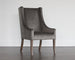 This oversized dining chair features an elegant wing back style with contoured arms. Stocked in our soft piccolo pebble performance fabric with smoked brown oak wood legs. Can also be used as an occasional chair in residential and contract environments. Performance fabric is moisture repellent, durable and easy to clean.
