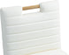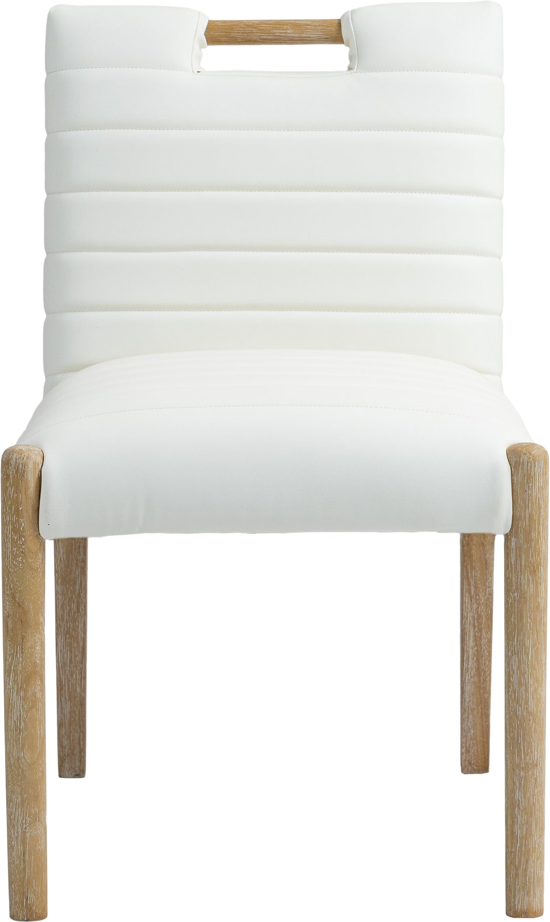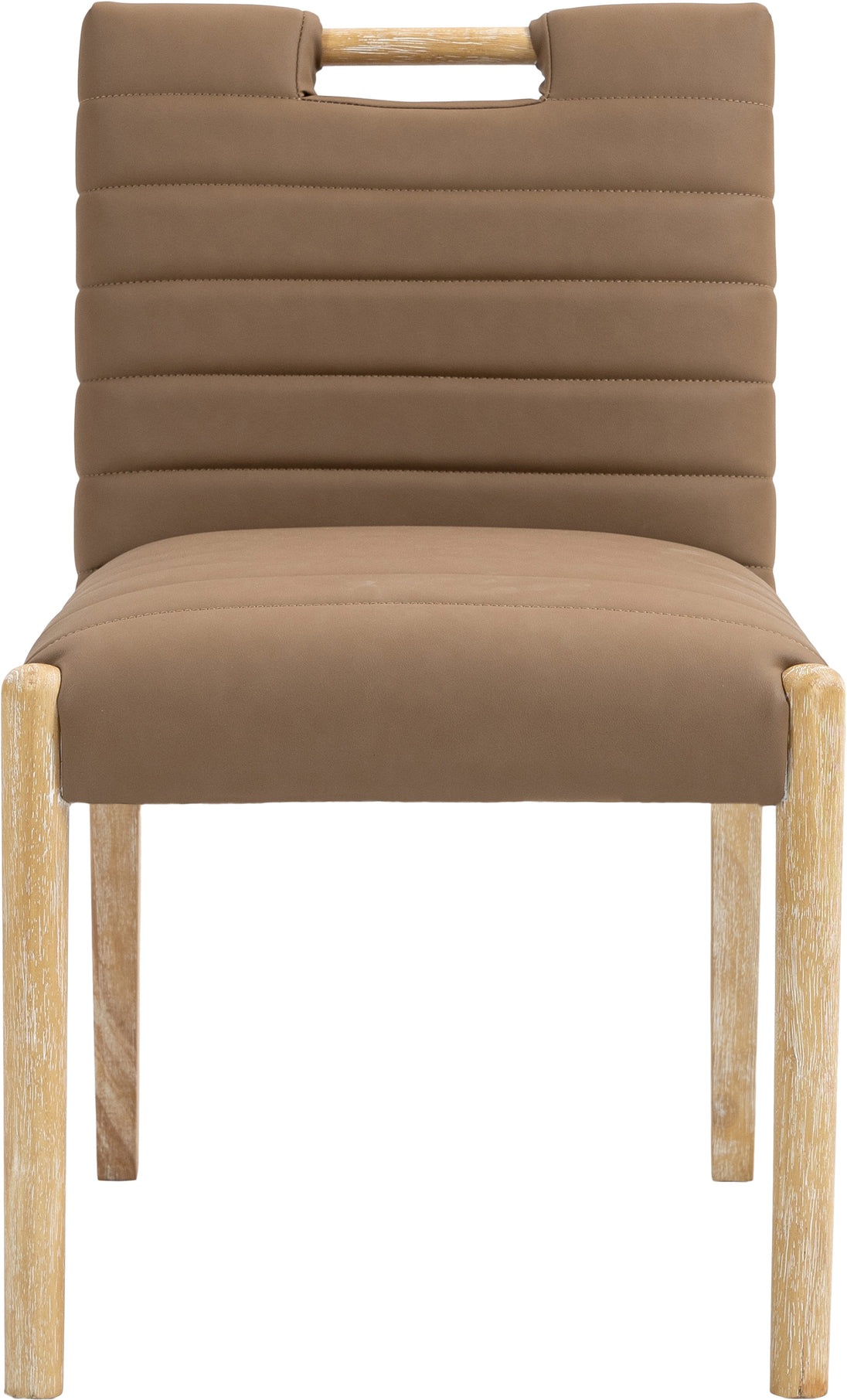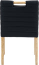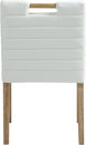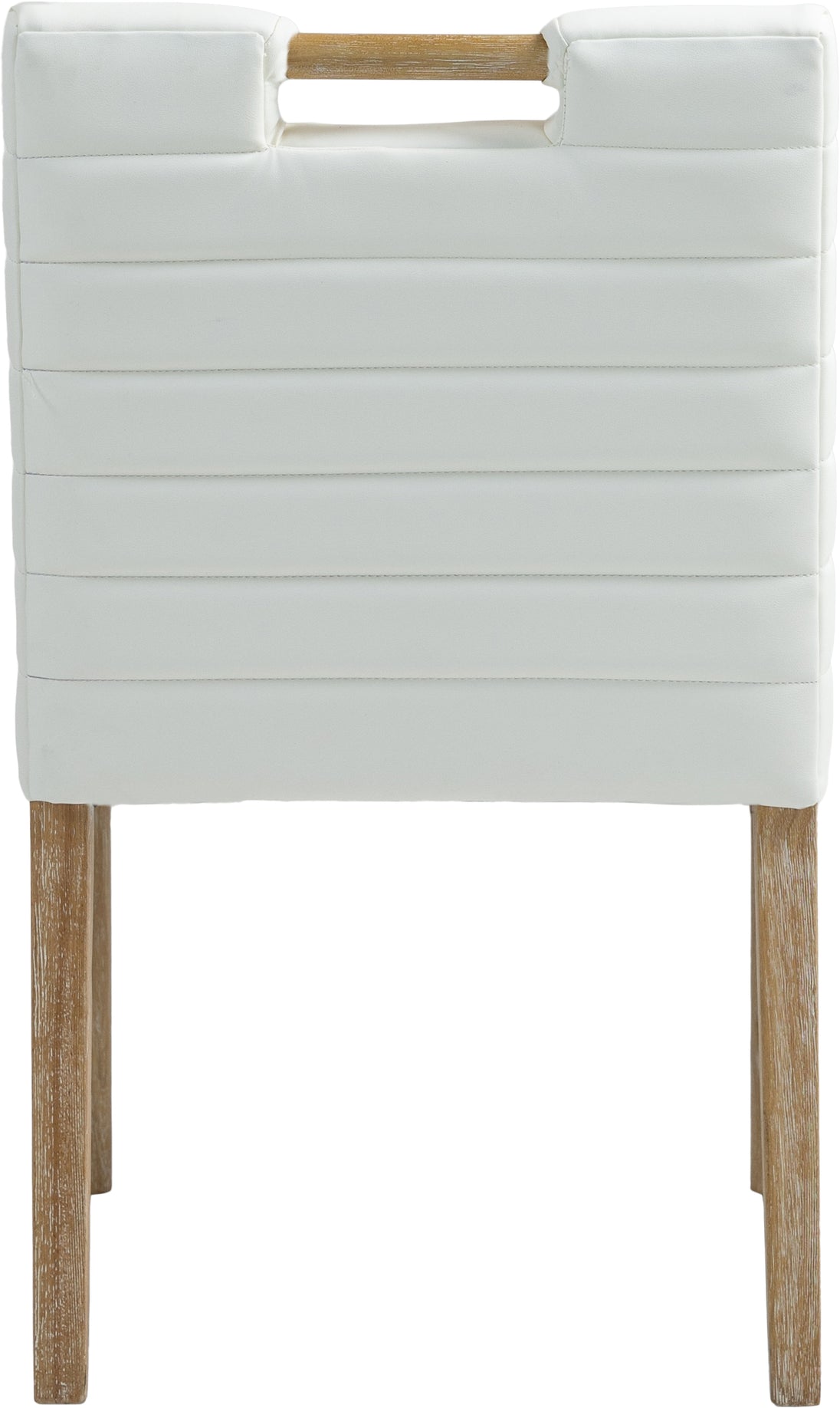 A perfect fusion of modern elegance and eco-friendly luxury is the Aimee vegan leather dining side chair. Upholstered in sleek vegan leather, this chair offers a chic, contemporary look while maintaining a commitment to sustainable living. The padded, quilted design featuring solid natural oak wood legs creates a stunning contrast between its soft upholstery and minimalist frame.