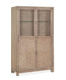 Industrial style gets a light and airy vibe with the soft organic color palette of the Ainsley Dining Collection, featuring a tactile Cerused Khaki finish with a subtle gray wash on exotic, elegant Acacia Solids and Veneers. Adding character to this collection are exquisite book-matched veneers in an X-motif on case fronts, metal ferrules on the base of the round dining table and metal brackets on the edges of the rectangular Parson’s leg Dining Table and the Parson’s Leg Bench, all in an Industrial Bronze finish. The Display Cabinet combines the book-matched pattern at the bottom of the two doors with glass on the top of each door. Chair choices in the collection include a modified Windsor chair with an upholstered seat and upholstered host and side chairs. Create an uplifting setting in soothing natural colors and textures for memorable meals with the Ainsley Collection.