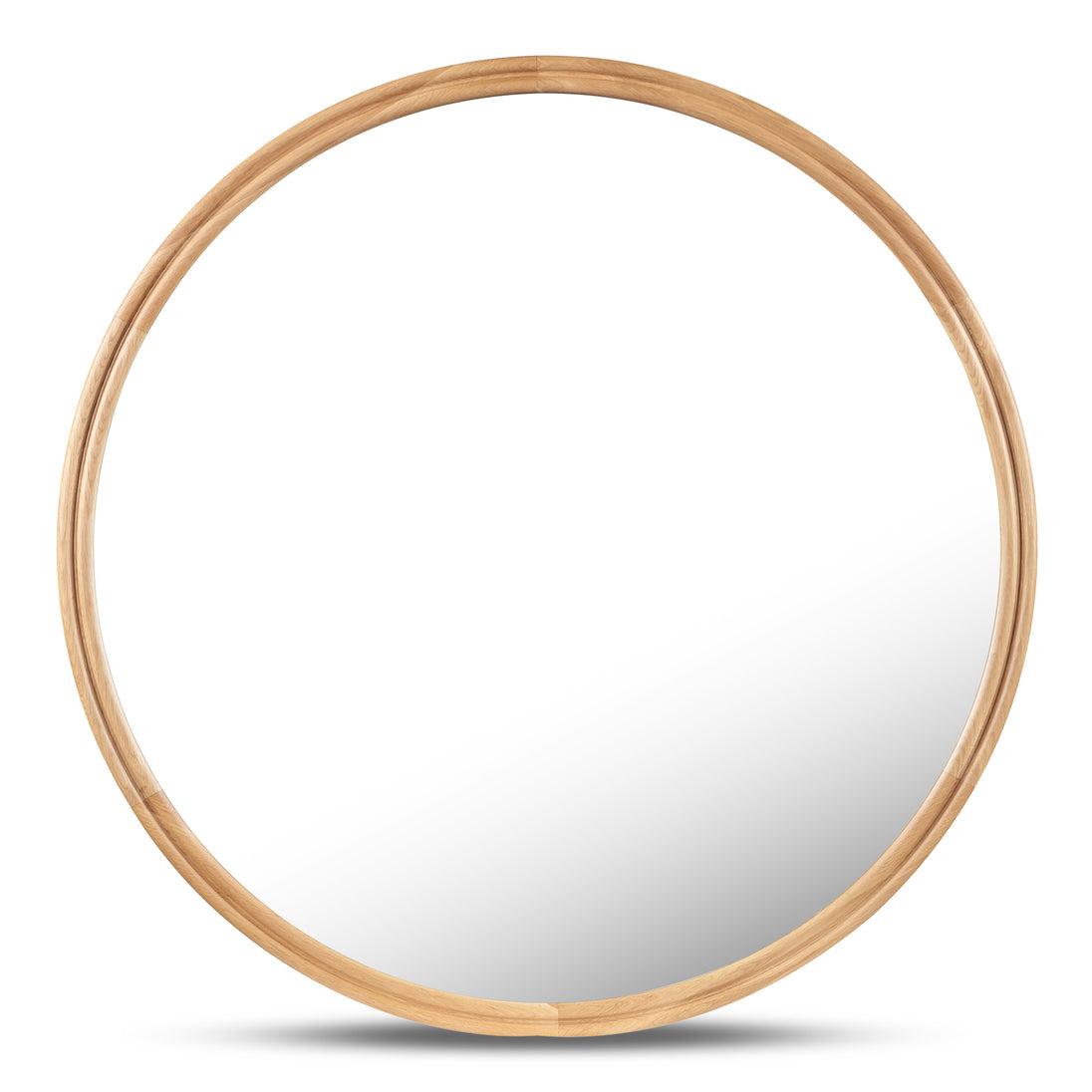 The Alcott round mirror celebrates wood's inherent beauty with a thoughtful double-frame detail. Each mirror showcases the meticulous finish, enhancing the wood's rich, warm tones and creating a serene focal point in entryways, bedrooms, or living areas.