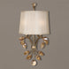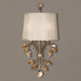 Burnished Gold Metal With Golden Teak Crystal Leaves And A Silken Champagne Fabric Shade With Natural Slubbing. With 2-60 Watt Max, Candelabra Sockets.Product Features