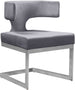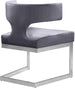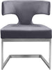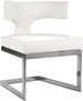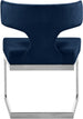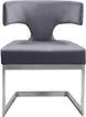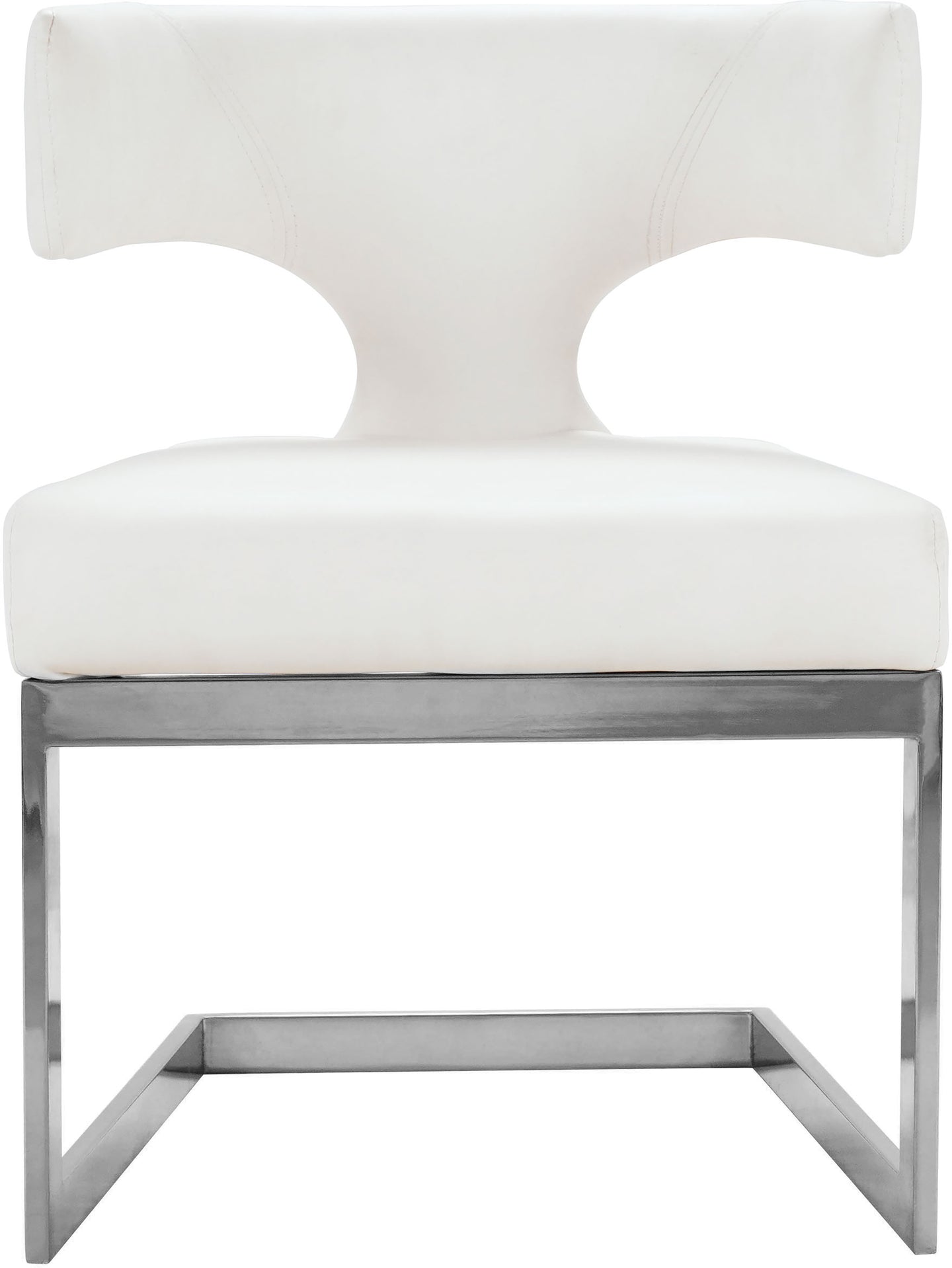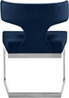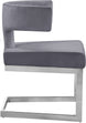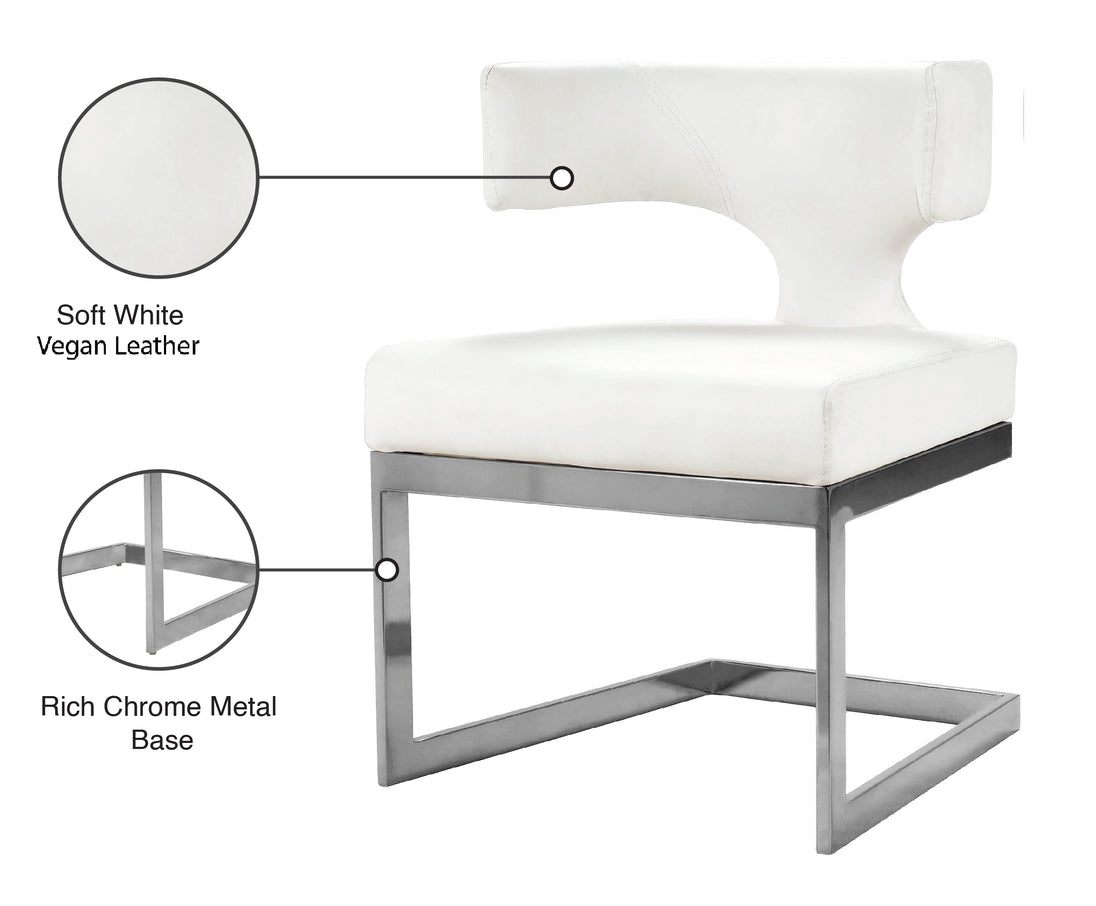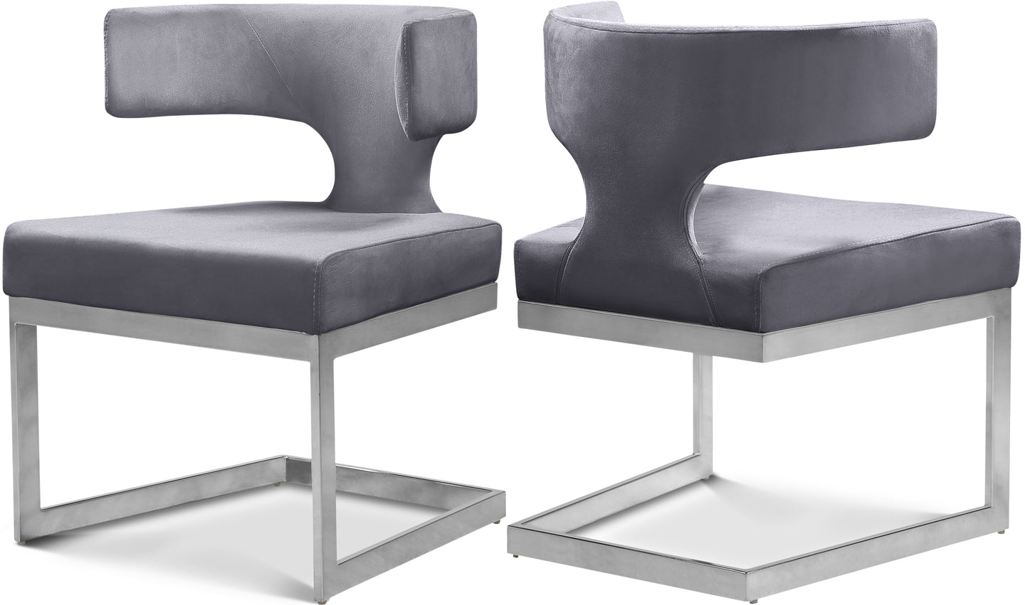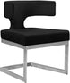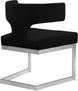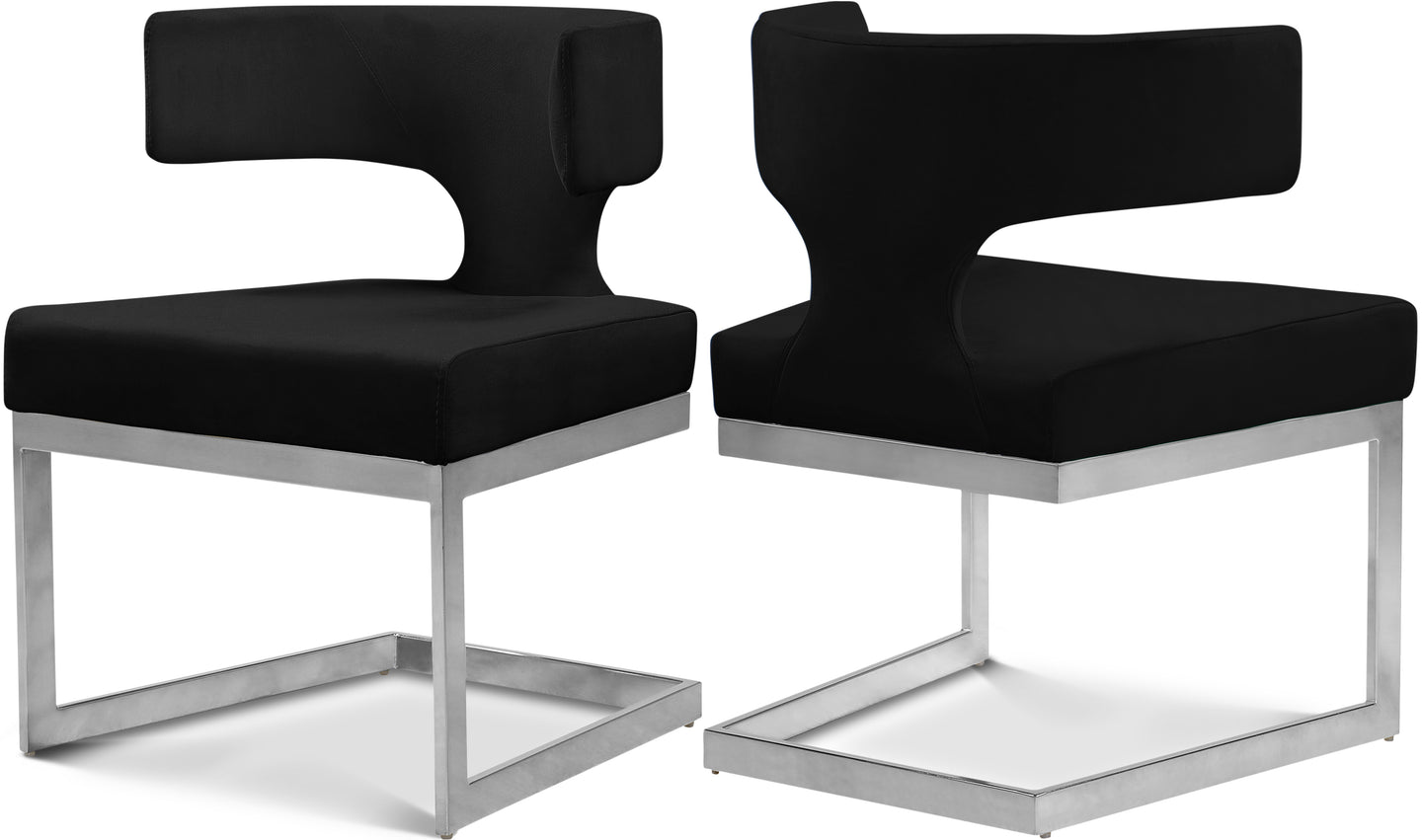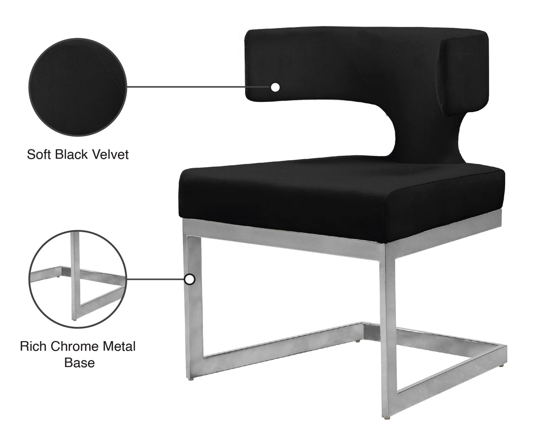 Bring artful living to your dining room with this Alexandra velvet dining chair. This sumptuously appointed chair has a back design that cradles your body as you sit, making dinner time an experiment in total relaxation. Soft black velvet upholstery covers the back and the plumply padded seat, ensuring you get extra cozy while you eat. A rich chrome metal base adds to the chair's beautiful durability.