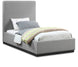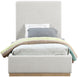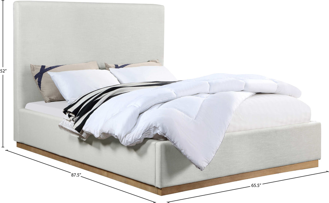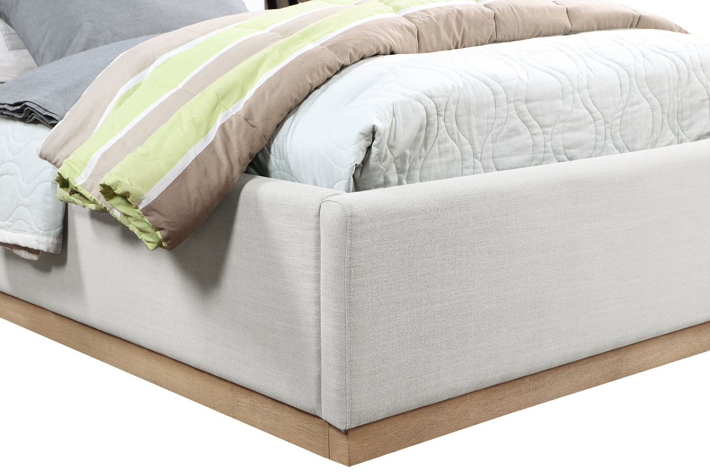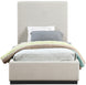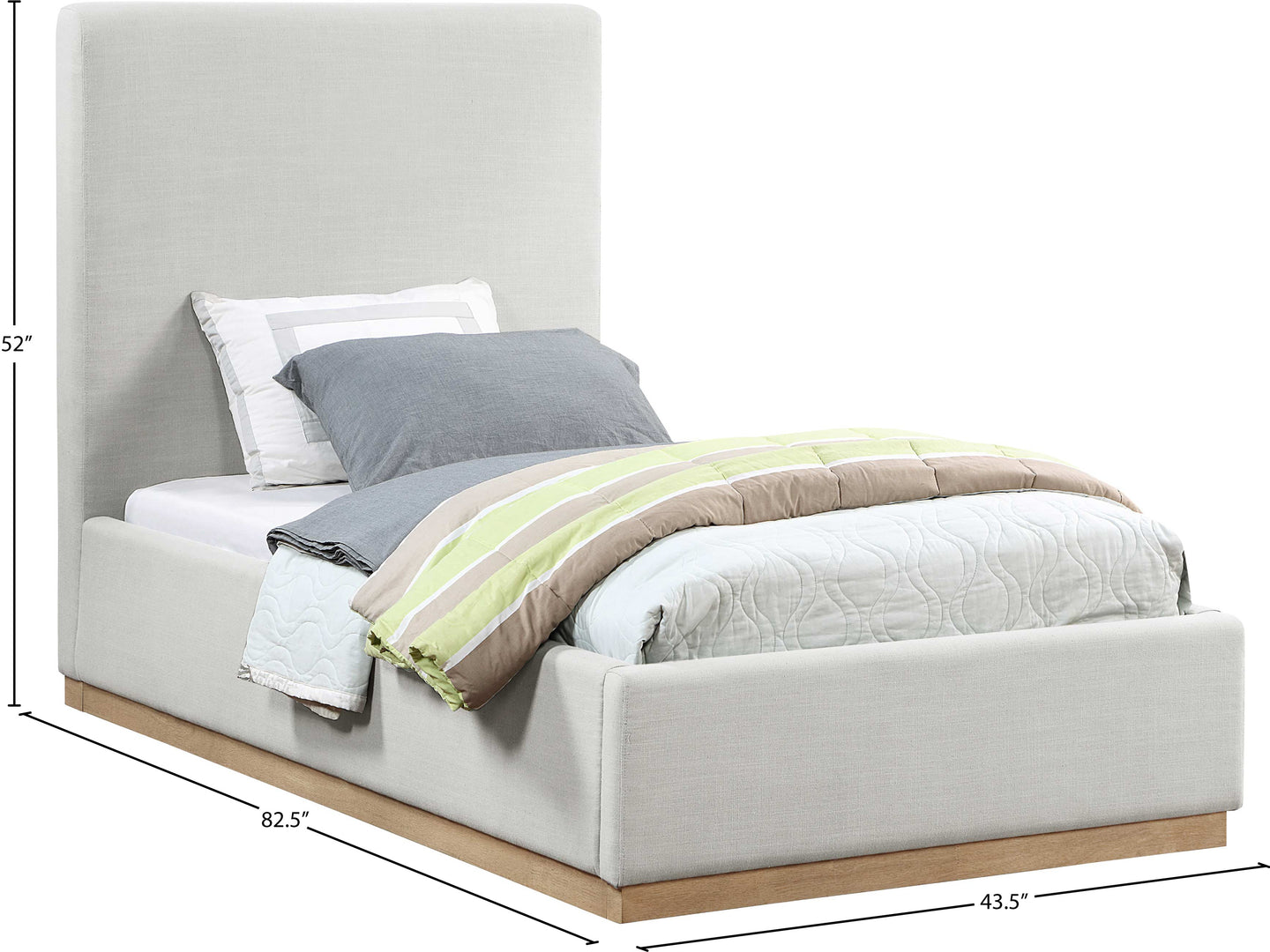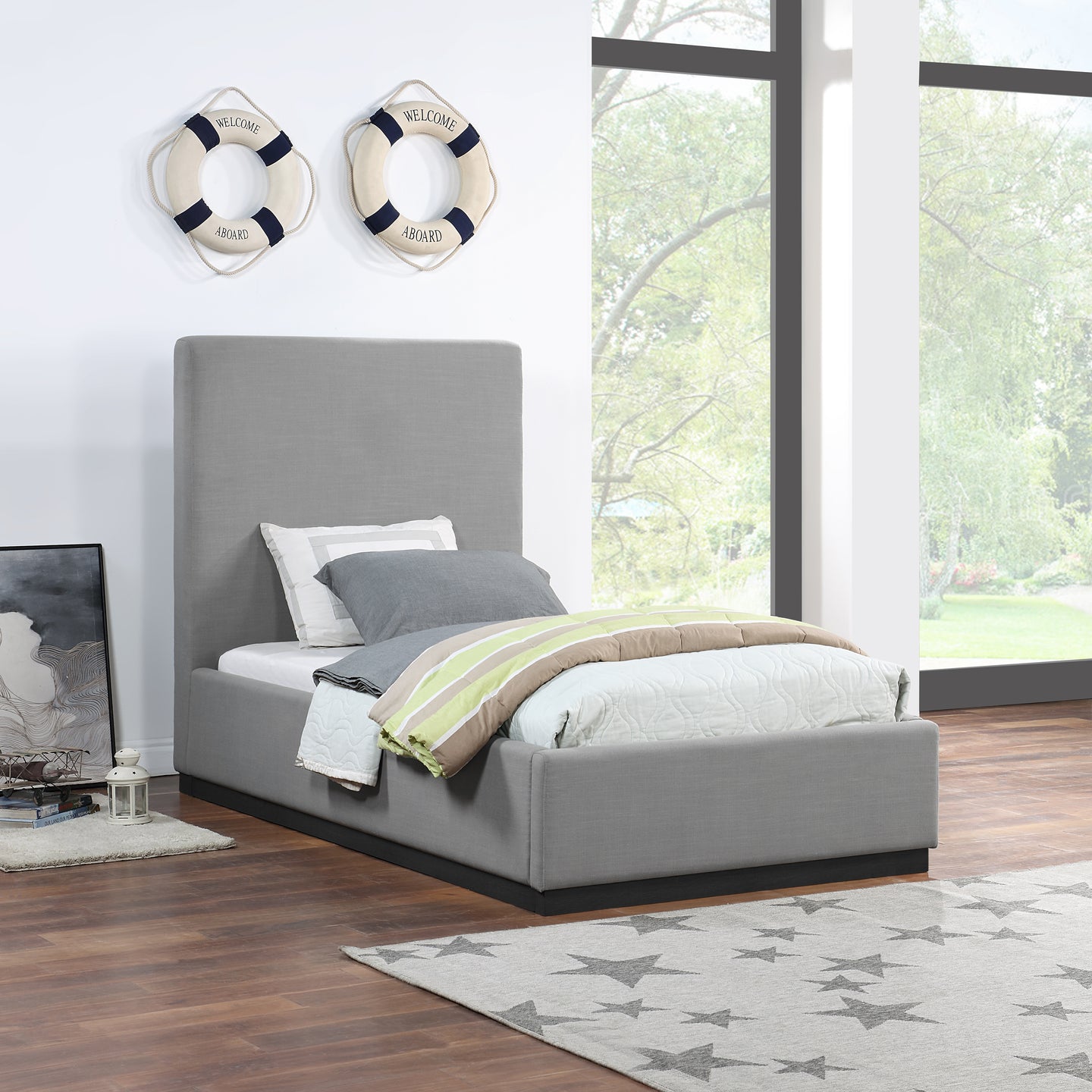 Give your bedroom a regal vibe when you add this Alfie linen textured fabric bed to the mix. The ultra tall headboard on this twin-size bed makes a bold impression from all angles and is covered in rich beige linen textured fabric that forms a pleasant contrast with the black finish solid wood base. The full flat design lets you easily use this bed without a box spring - a top mattress is all that's needed.