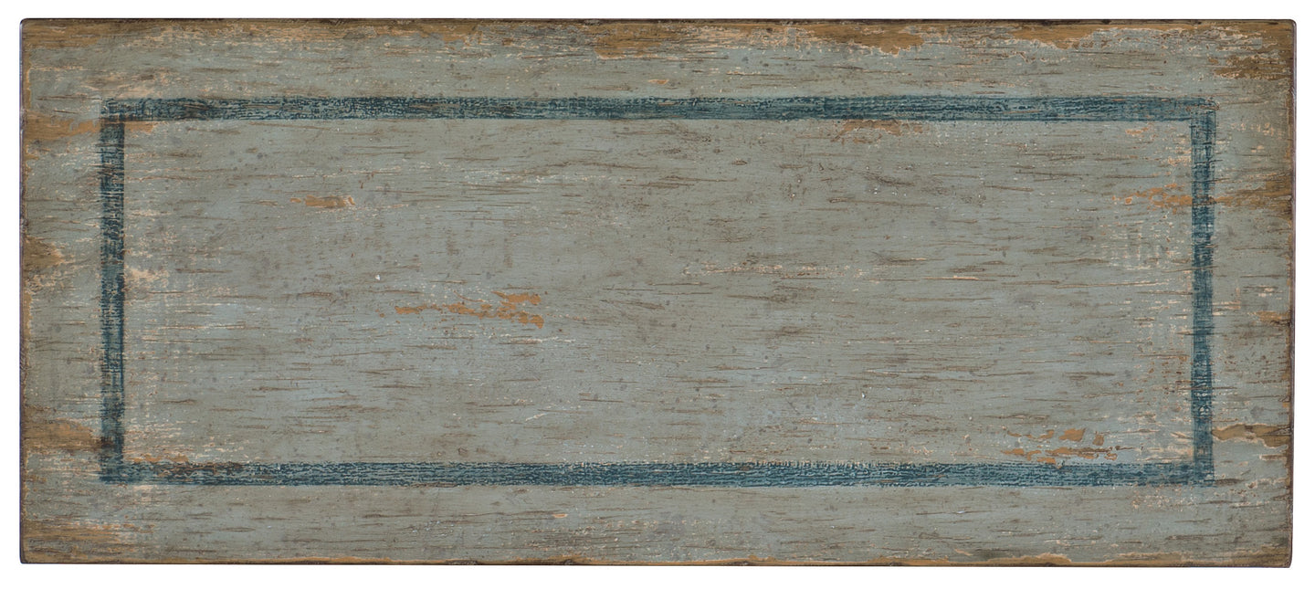 - Finish: Normandy (dark blue) finish. Knob hardware in hand hammered florentine gold color. Distressing includes hand planing, wormholes, rock, rasping edge and scraping.