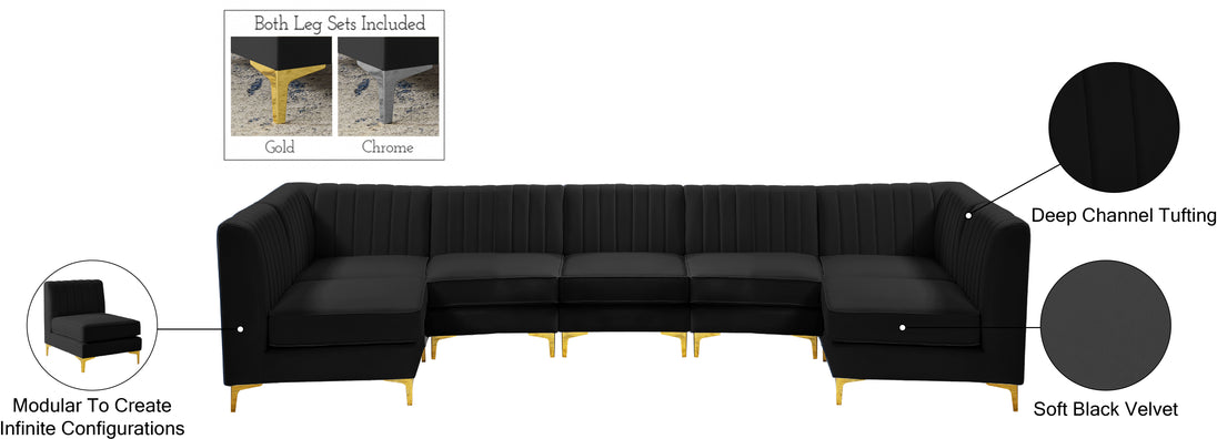 Bring modern beauty to your space with the addition of this Alina Velvet Modular sectional. This beautiful sectional features deep channel tufting to ramp up its visual interest and add to its resilient demeanor. Its soft black velvet upholstery blends nicely with existing elements in your room and is sleek to the touch, making this seat a super comfortable one. Part of the modular Alina collection, this sectional has a latch that attaches it to other pieces to create your custom seating arrangement.