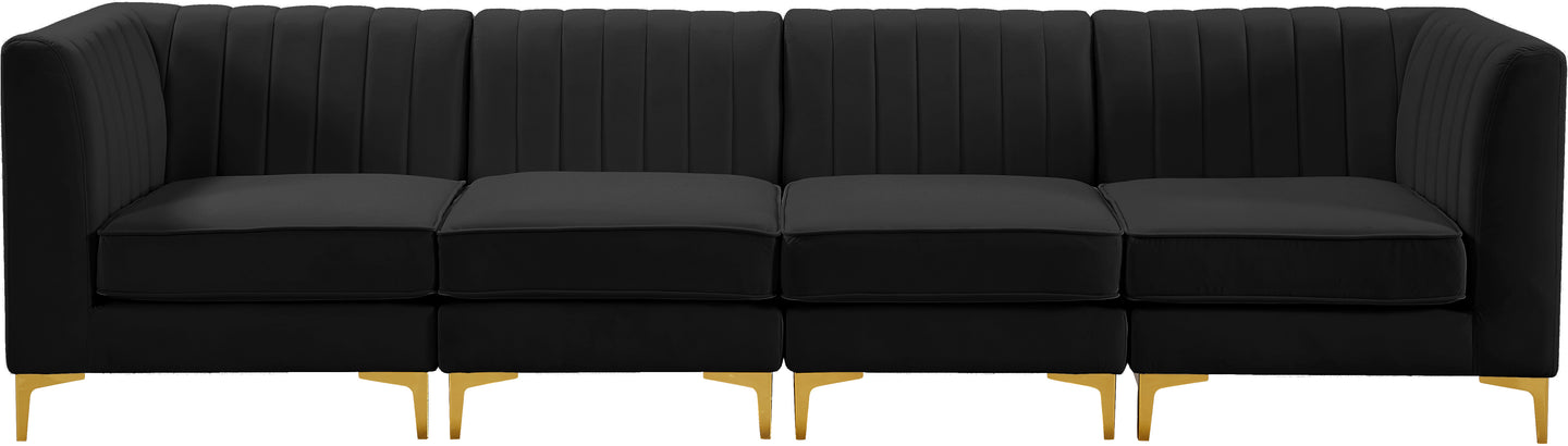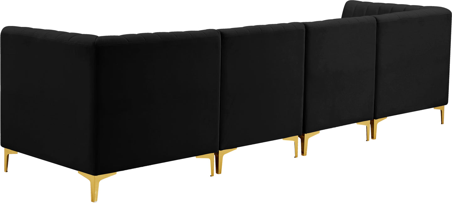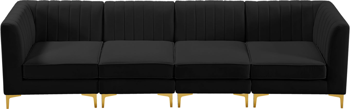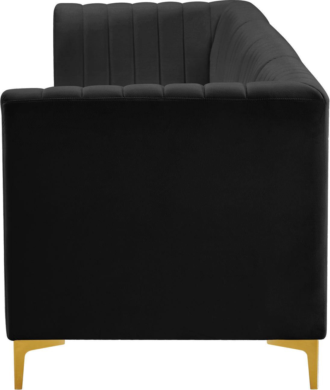 Bring modern beauty to your space with the addition of this Alina Velvet Modular Sofa. This beautiful sofa features deep channel tufting to ramp up its visual interest and add to its resilient demeanor. Its soft black velvet upholstery blends nicely with existing elements in your room and is sleek to the touch, making this seat a super comfortable one. Part of the modular Alina collection, this sofa has a latch that attaches it to other pieces to create your custom seating arrangement.