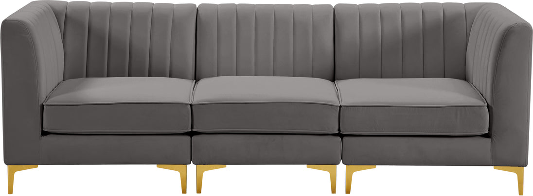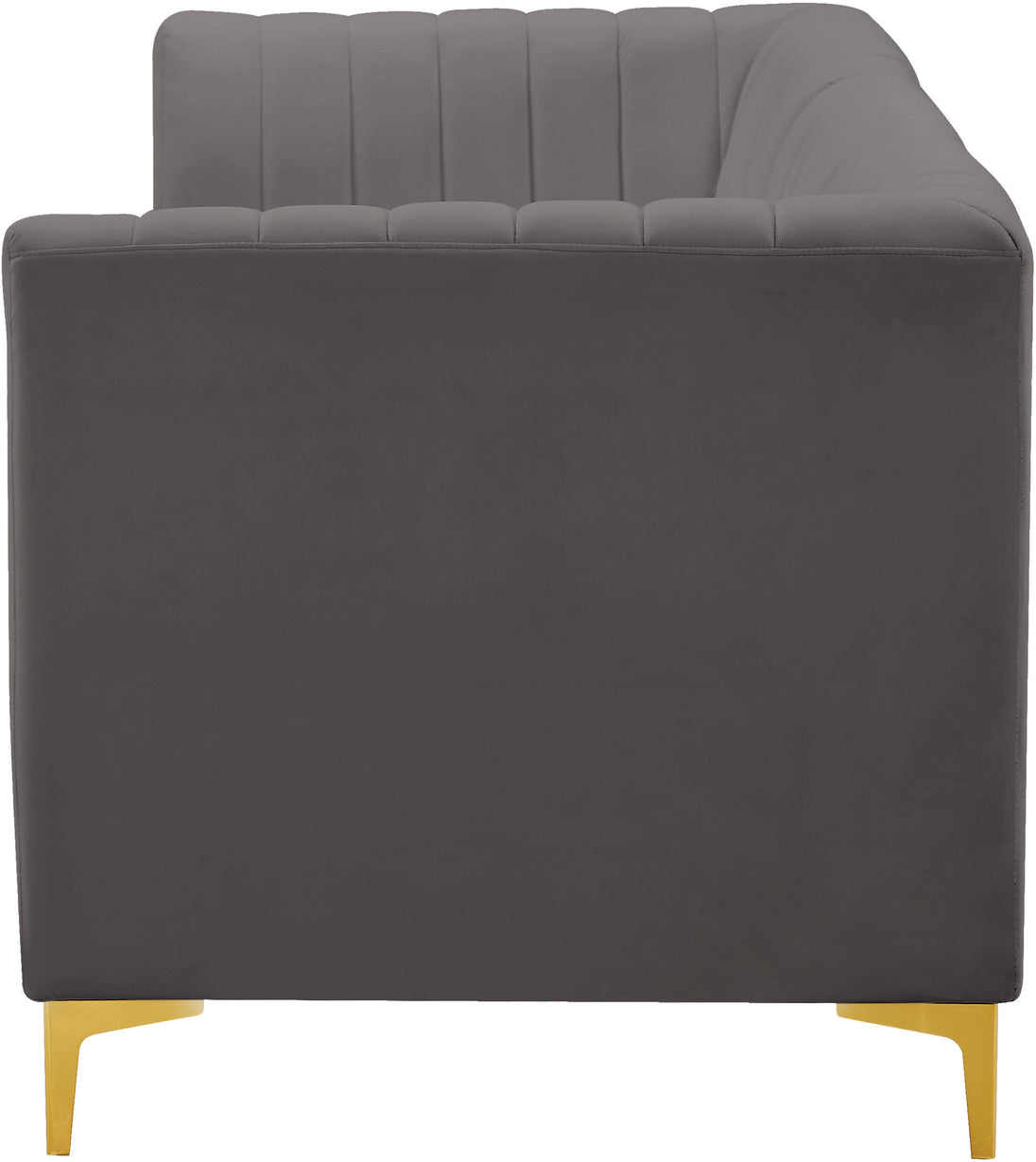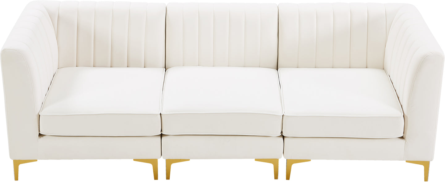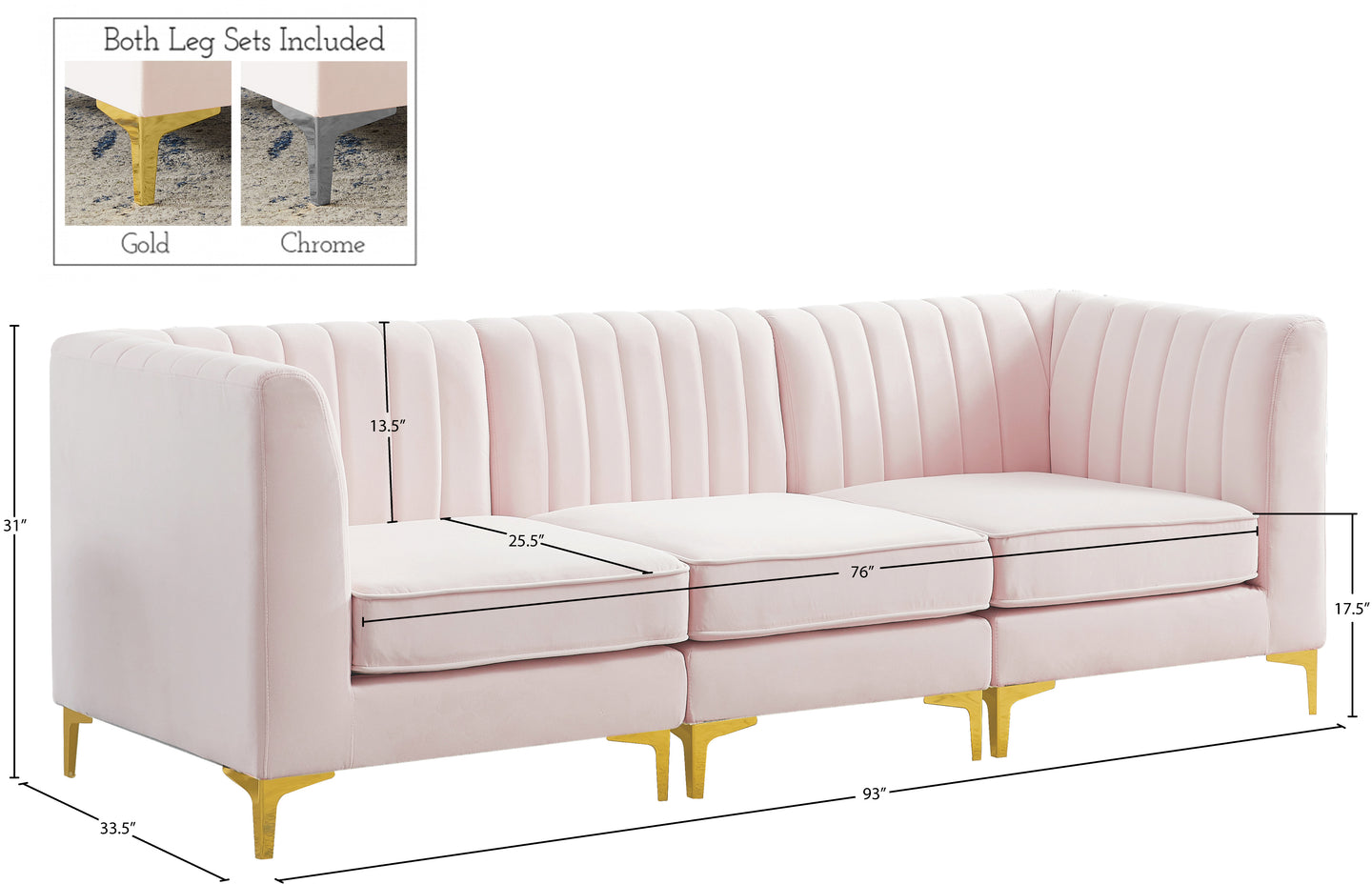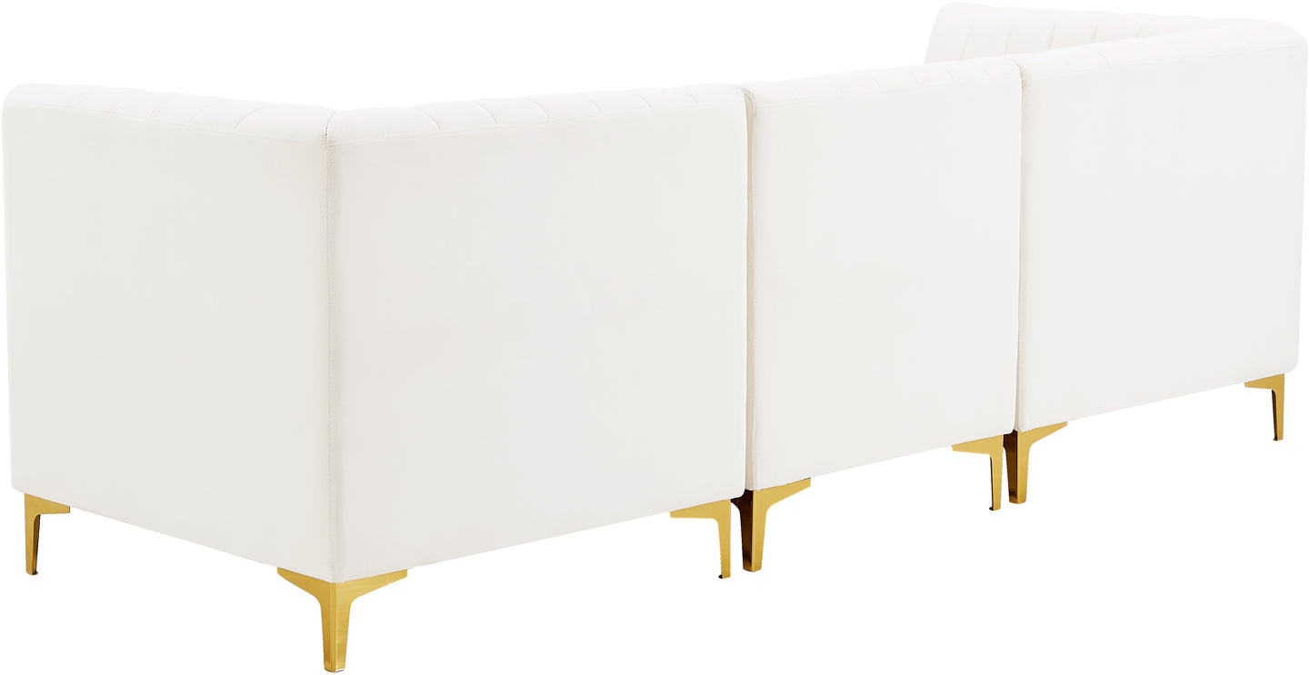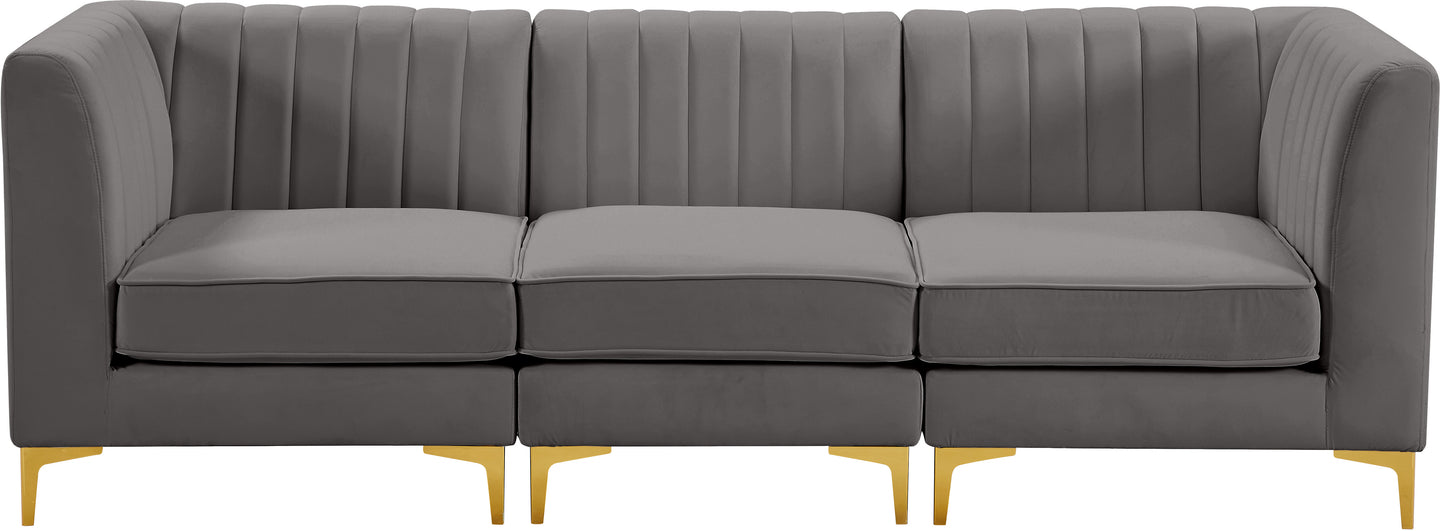 Bring modern beauty to your space with the addition of this Alina Velvet Modular Sofa. This beautiful sofa features deep channel tufting to ramp up its visual interest and add to its resilient demeanor. Its soft black velvet upholstery blends nicely with existing elements in your room and is sleek to the touch, making this seat a super comfortable one. Part of the modular Alina collection, this sofa has a latch that attaches it to other pieces to create your custom seating arrangement.