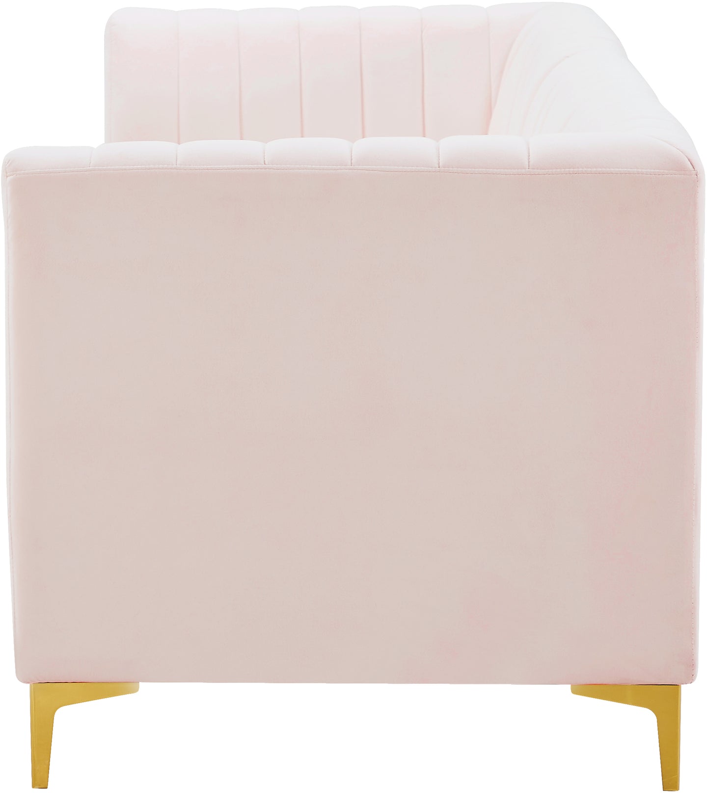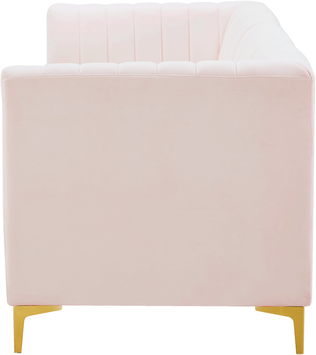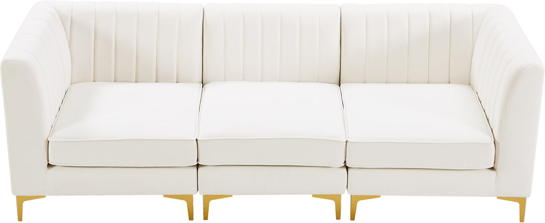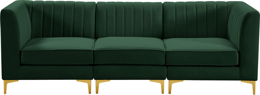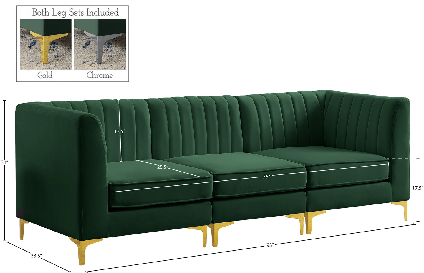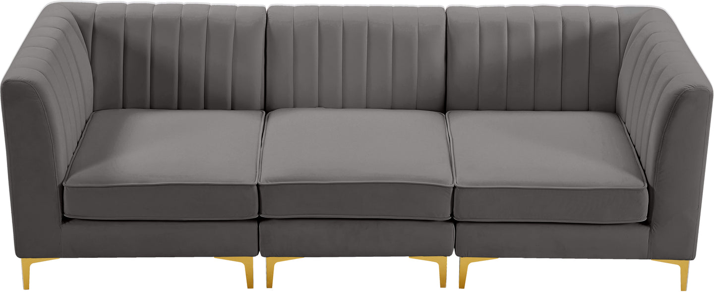 Bring modern beauty to your space with the addition of this Alina Velvet Modular Sofa. This beautiful sofa features deep channel tufting to ramp up its visual interest and add to its resilient demeanor. Its soft black velvet upholstery blends nicely with existing elements in your room and is sleek to the touch, making this seat a super comfortable one. Part of the modular Alina collection, this sofa has a latch that attaches it to other pieces to create your custom seating arrangement.