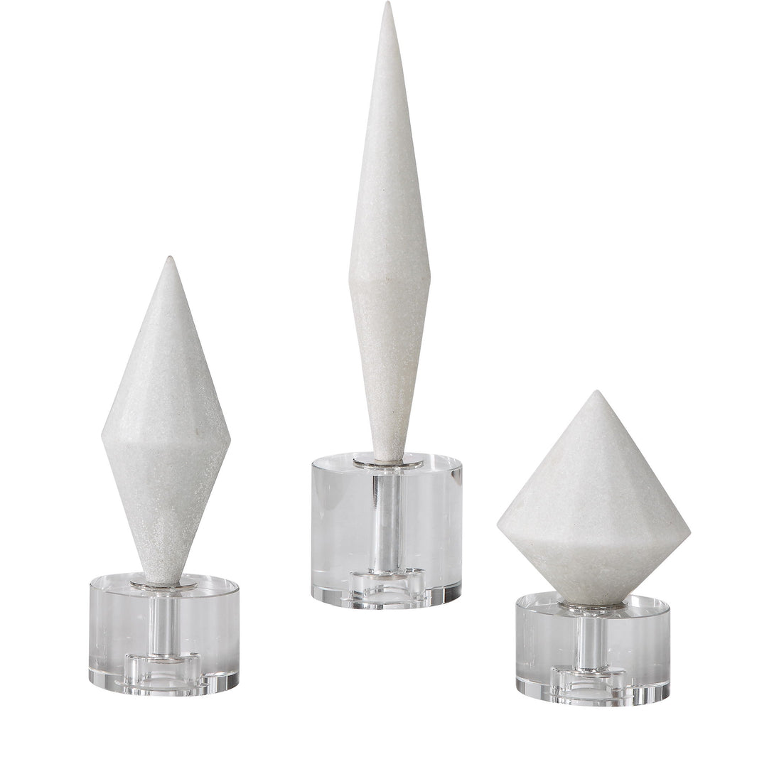 Elegant White Diamonds Made Of Granulated Marble That Accurately Replicates The Look Of Thassos Marble Atop Crystal Bases. Sizes: Sm-5x7x5, Med-4x10x4, Lg-4x14x4Product Features