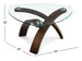 The Allure table collection brings a distinctive contemporary look and urban feel with its unique criss-crossed arched bases and shaped glass tops. Featuring bases crafted of walnut veneers and bent plywood solids and tabletops featuring tempered glass and stainless steel pucks this collection provides a unique, modern look making a bold eye-catching statement.