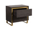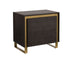 Exuding a refined style, this classic nightstand will add beauty to any bedroom space. Features two push-to-open drawers and crafted with solid oak wood frame with a grey oak veneer frame. Completed with steel legs in a rustic bronze finish. Pairs well with the Alvaro dresser and bed.