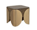 An angular masterpiece, the Amarula Side Table is a breathtaking construction, ripe with curves and fluidity. Crafted with a timber effect on a concrete top and draped with powder-coated brushed brass legs, this side table is a modern take on a bold mix of materials.