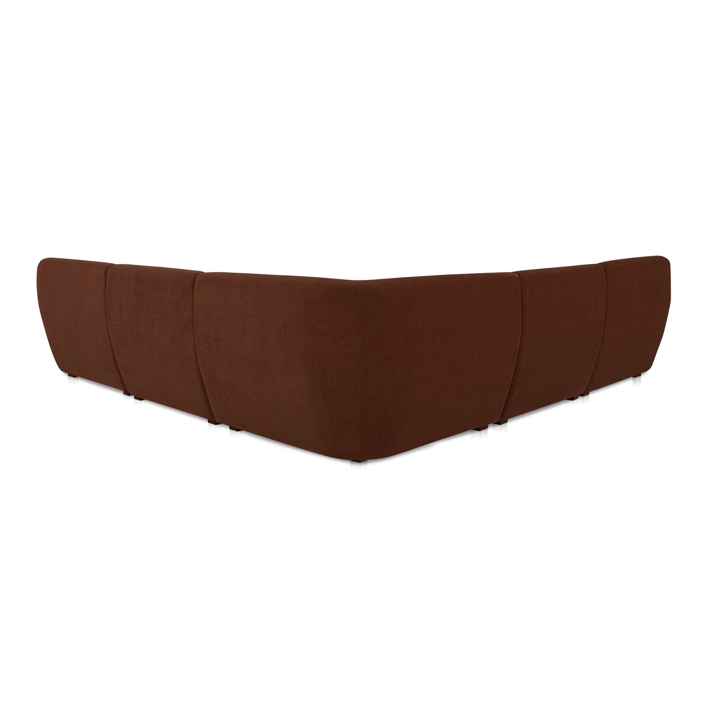 Offering a generous seat wrapped in rich, warm-toned upholstery, the Amelia Classic L modular sectional allows numerous configurations to fit any interior design or spatial requirements. Its high back and sloped arm curvature combine to offer a supportive seat, inviting guests to lounge and relax. For added comfort, a lumbar cushion is perfect for posture as this piece radiates a welcoming ambiance. Consists of 3 modular parts: 1 left corner chair, 1 slipper chair, and 1 right arm facing chaise for easy switch around. Consists of 5 modular parts: 1 corner, 1 right arm facing, 1 left arm facing, and 2 slipper chairs for easy switch around.
