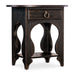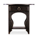 In a classic, charming design with a nostalgic flair, the Americana One-Drawer Oval Nightstand has ornately shaped legs that form the shape of a keyhole on the front, sides and back. Crafted of Oak Veneers, it is finished in the deep, dark Molasses finish, with drawer interiors in the warm Honey finish. The drawer is self- closing.
