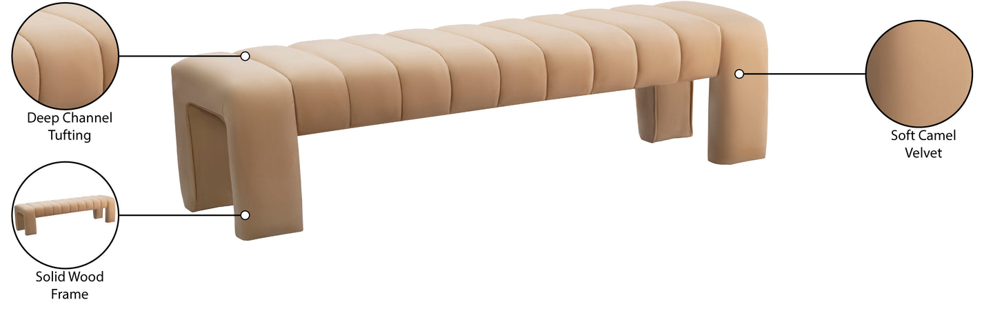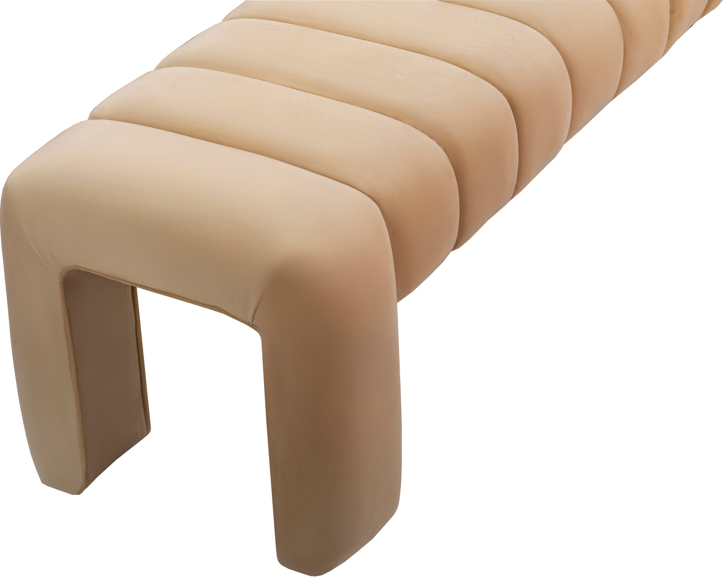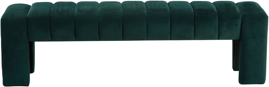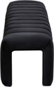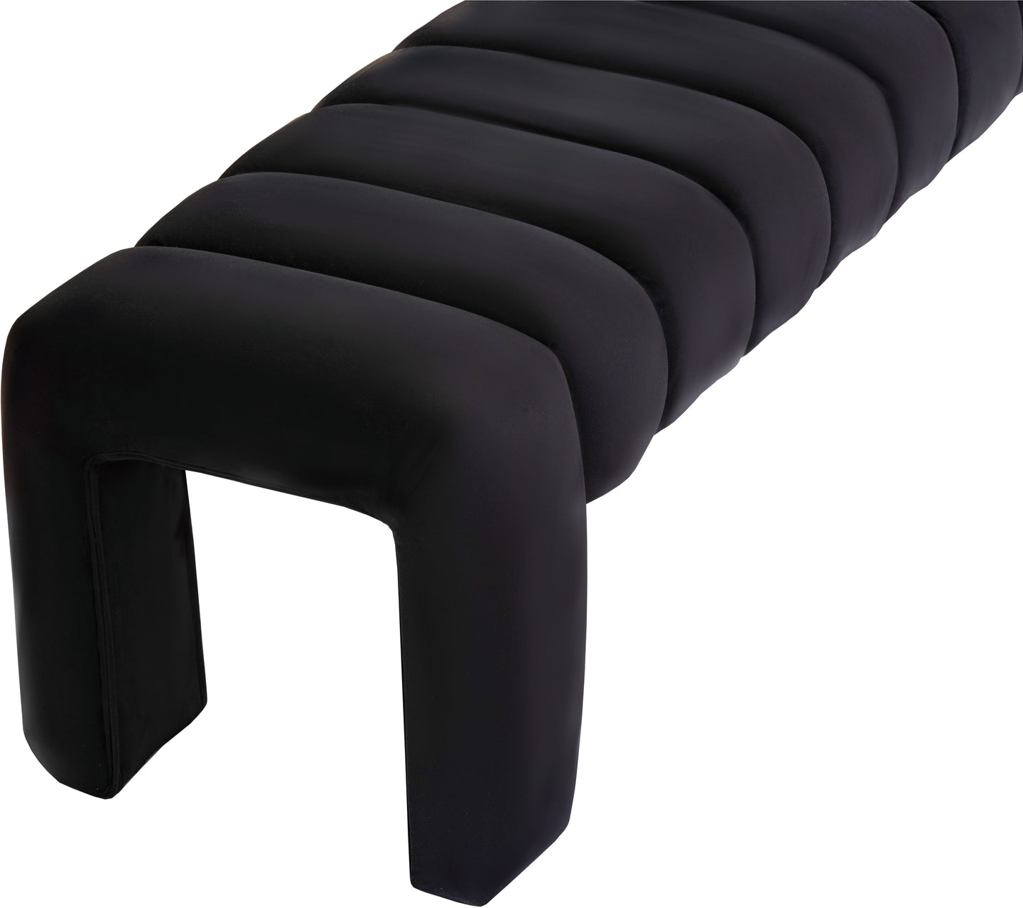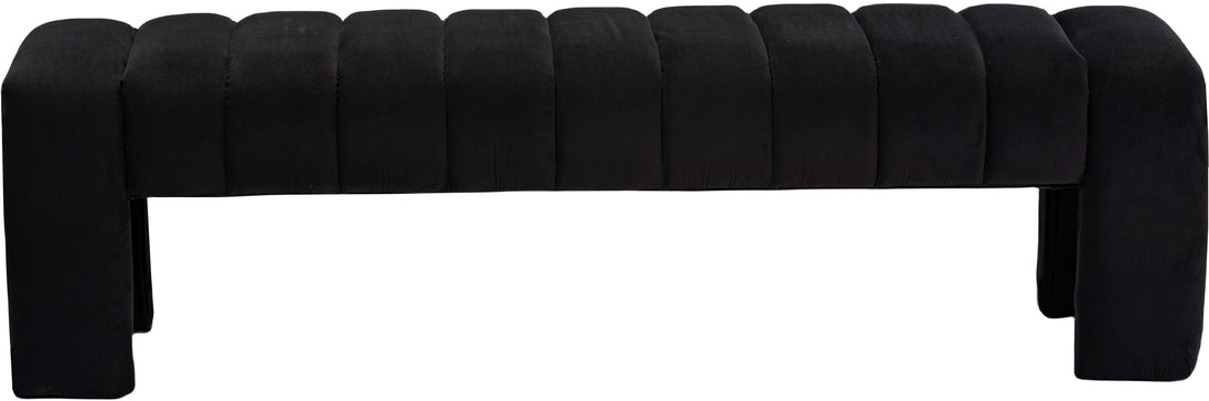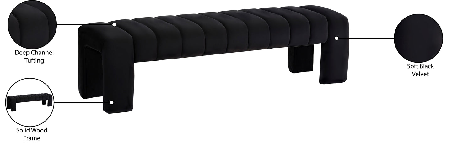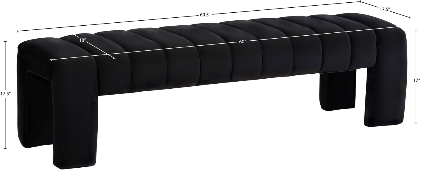 Make a grand statement in your living space with the luxurious Andaz Bench. Crafted with rich black velvet, this bench features deep channel tufting that adds a touch of elegance and sophistication to any room. The strong and durable frame is crafted from solid wood, ensuring a stable and robust foundation for any use.With its plush seating and stunning design, the Andaz Bench is the perfect addition to any home looking to elevate their decor.
