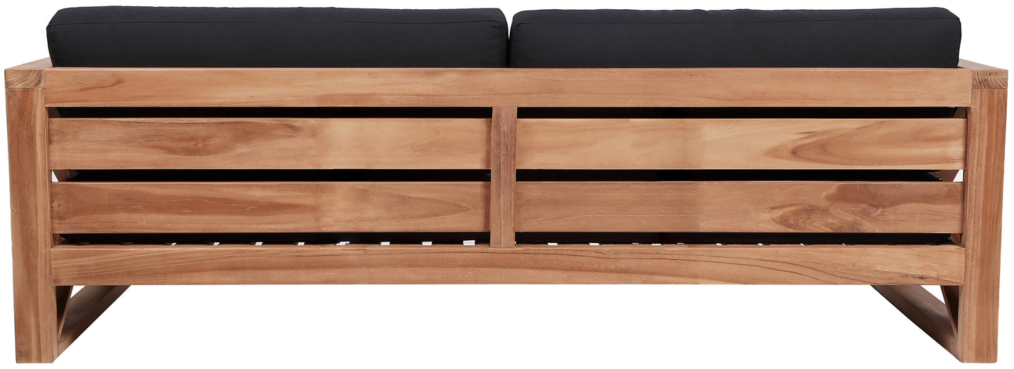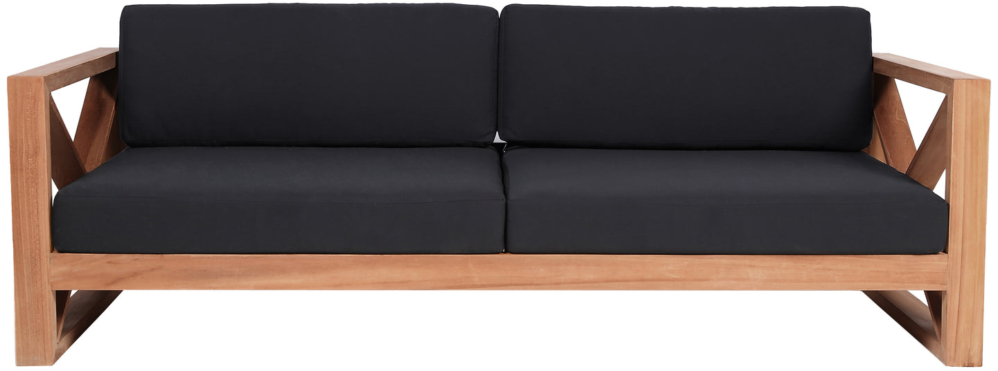 Bring home this Anguilla teak outdoor sofa to complete the look of your outdoor entertaining area. This resort like sofa is stylish and comfortable, making it perfect for entertaining or peacefully relaxing in the comfort of nature. Made from teak with a natural finish and black water resistant fabric, this sofa is resistant to rot and pests, so it weathers the outdoors with ease. Pair the sofa with more Anguilla items for a casual and serene look outside.