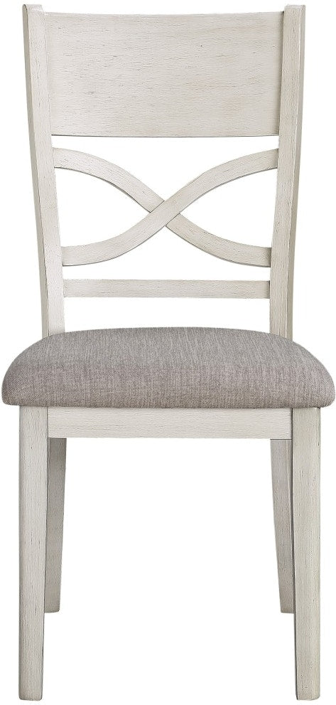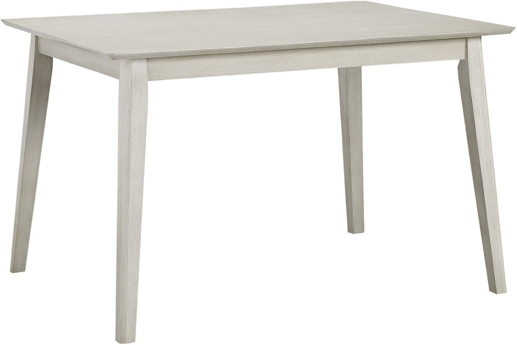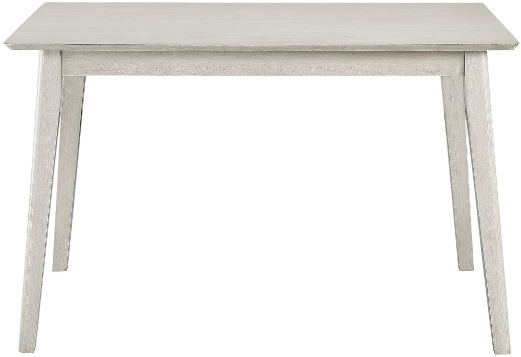 Product Description: Seating four with ease, the Anderson Collection will be the perfect addition to your casual dining space. The rectangular table features acacia veneer that is finished in an antique white. The accompanying wood framed chairs feature gray linen-like seats that perfectly pair with the rectangular table, completing the transitional look of this 5-piece packed set.