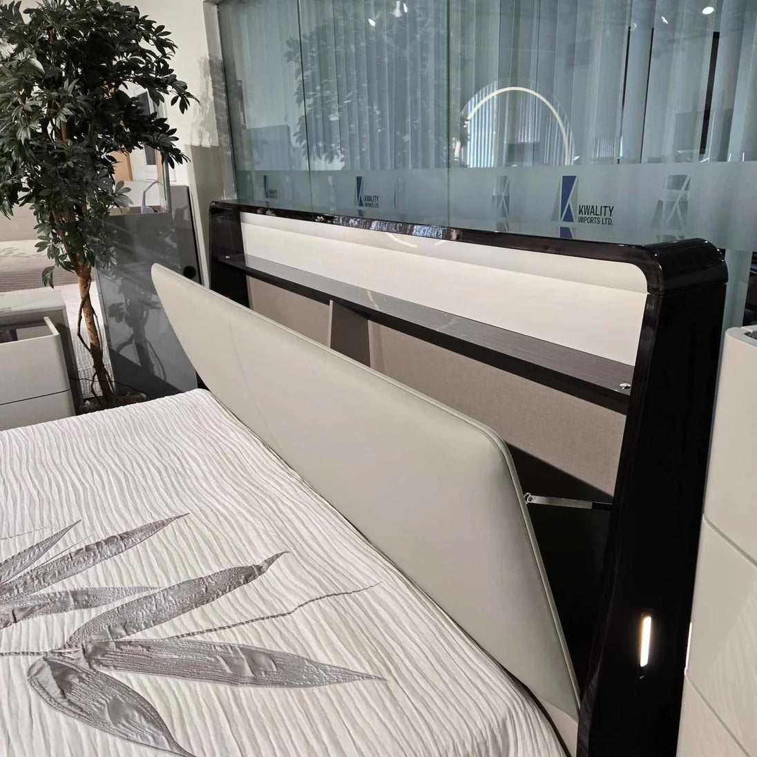 Bring elegance, innovation, and smart functionality to your space with the ECLIPSE Bedroom Collection, a stunning combination of modern design and intelligent storage. Finished in a sleek high-gloss grey and ebony lacquer, this set instantly elevates any bedroom with its contemporary aesthetic and premium craftsmanship.
