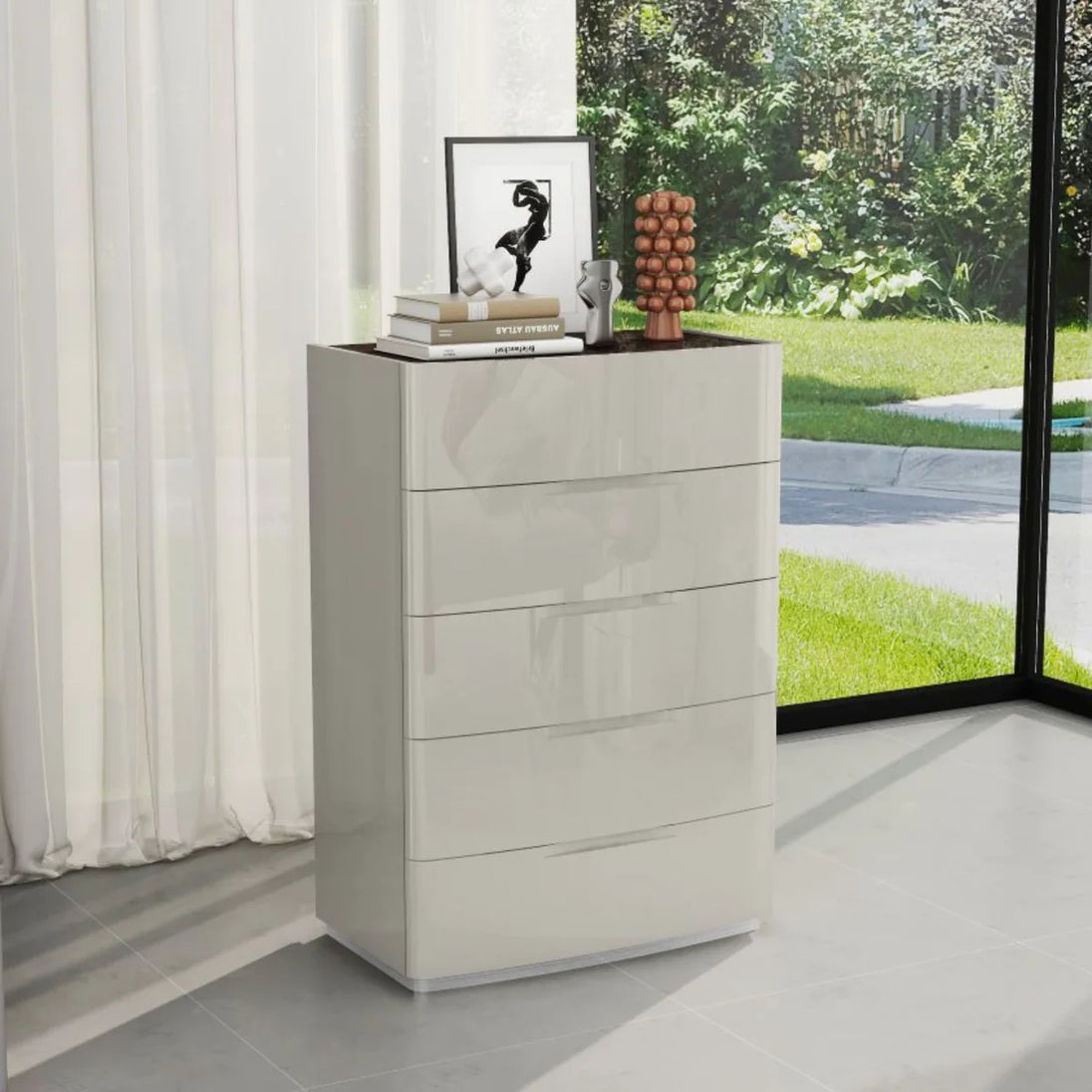 Crafted with a durable wood frame and smooth lacquer finish, the dresser and chest merge sophistication with practicality. The nightstands feature two spacious drawers with a smooth-glide mechanism for easy access, maintaining a clean and organized bedside space. The chest includes a hidden jewelry drawer with divided sections for rings, bracelets, and accessories—designed to keep your valuables stylishly secure.