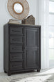 Foyland - 6 Pc. - Dresser, Door Chest, Mirror, King Panel Storage Bed - Black / Brown