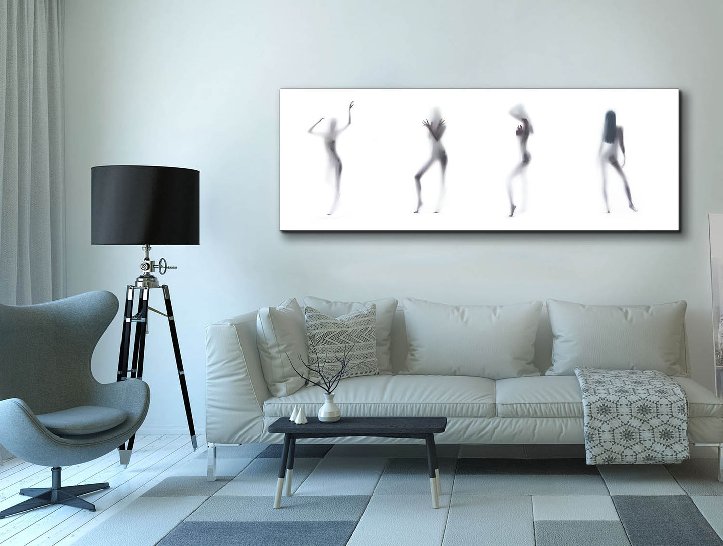 Silhouette of four women, this canvas in black and write is a fancy and elegant details. Lovers of high art and elegance will adore this masterpiece of four women, rendered in striking black and white. Indulge in sophisticated décor with this exquisite piece, a subtle and refined addition to any room.