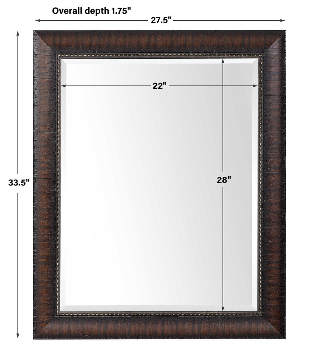 This Rectangular Mirror Features A Heavily Burnished Wood Look With Rich Mahogany Undertones, Faux Exposed Wood Grain And A Beaded Inner Liner. The Piece Has A 1" Bevel And May Be Hung Horizontal Or Vertical.Product Features