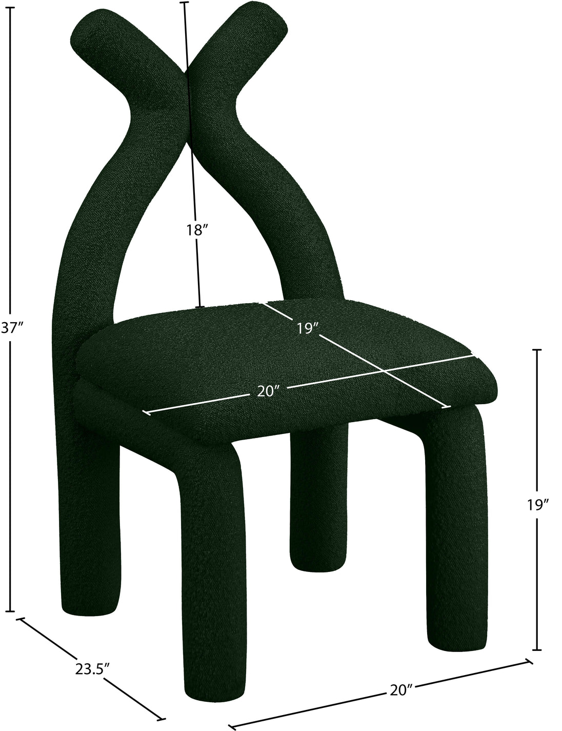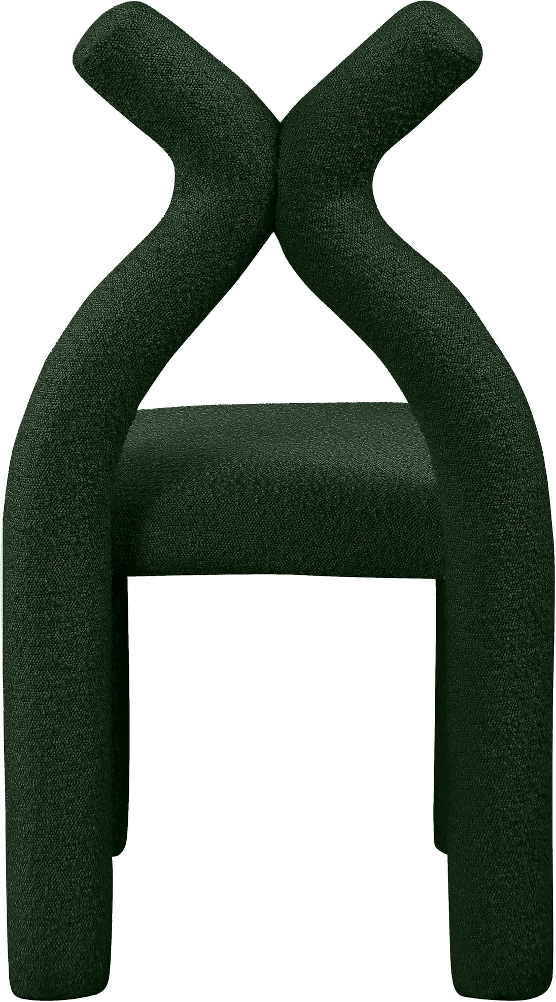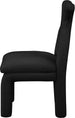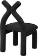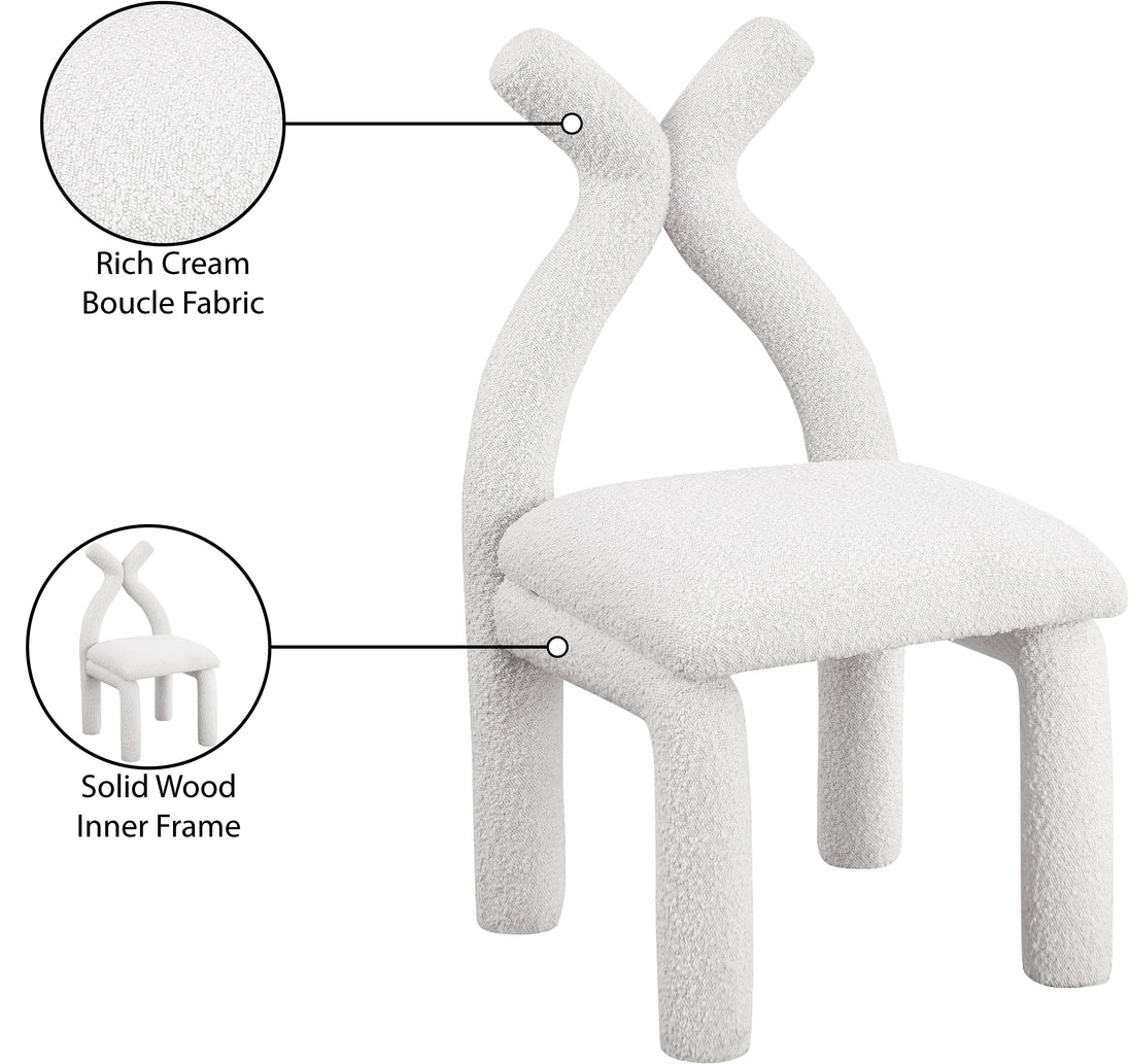 Make a bold statement in your home's decor with the striking Xena Boucle Fabric Accent/Dining Chair. The luxurious black boucle fabric paired with the solid wood inner frame not only exudes comfort and durability but also adds a touch of sophistication to your living space. Its unique and artful design is bound to captivate the eyes of anyone who enters your home.
