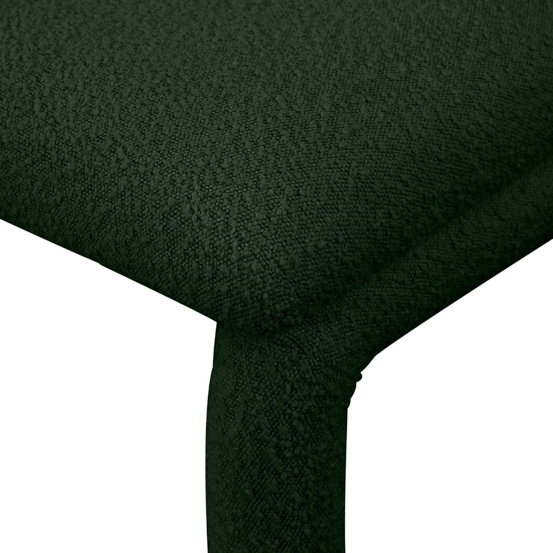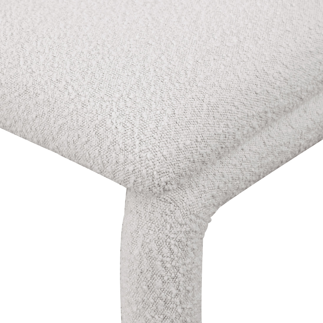 - Material: Boucle Fabric / Rubberwood / Plywood / Iron / Foam