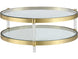 This glamorous coffee table is a showstopper. Featuring a tubular lucite frame and tempered glass top and bottom shelves. A stainless steel or brass frame completes the design. Perfect for living and lounge spaces in residential and contract environments.