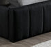Upholstered in smooth black fabric for a versatile, modern look