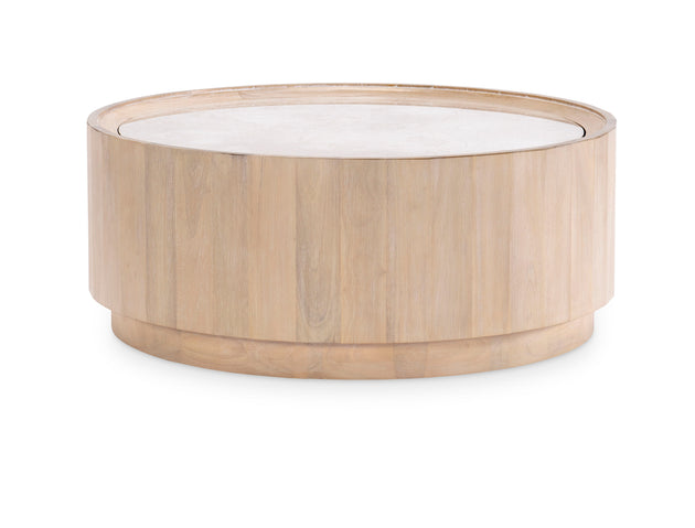Biscayne Round Cocktail Table With Travertine Top Beige