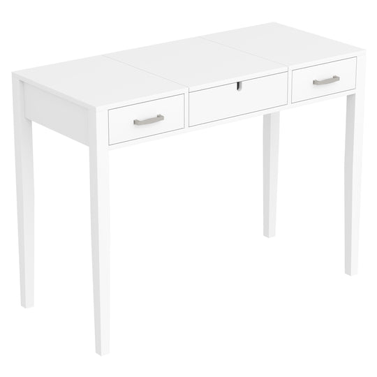 40" Vanity Console Table White 2 Drawers Foldable Mirror