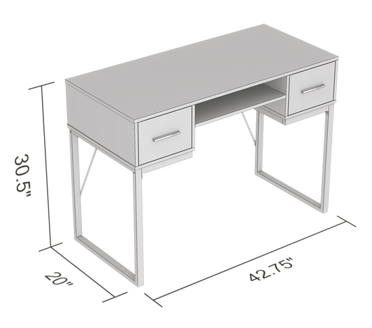 42.5" Computer Desk Dark Grey 2 Drawers 1 Shelf Black Metal Base