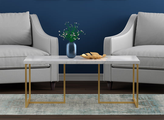 43" Coffee Table Marble Gold Metal Ottoman Sofa Table