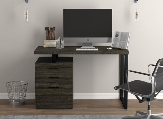 47" Computer Desk 3 Drawers Dark Grey Wood Silver Metal Base