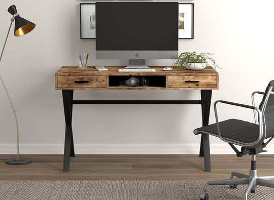 47" Computer Desk 2 Drawers 1 Shelf Brown Reclaimed Wood Black Metal