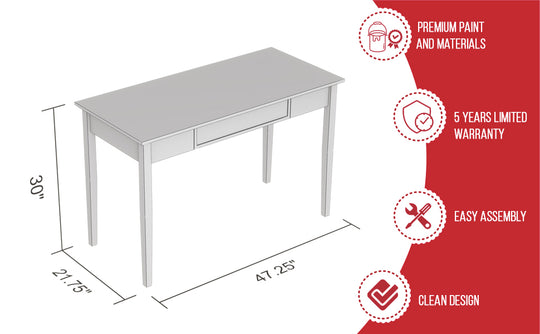 47" Computer Desk White 1 Drawer