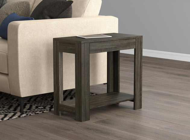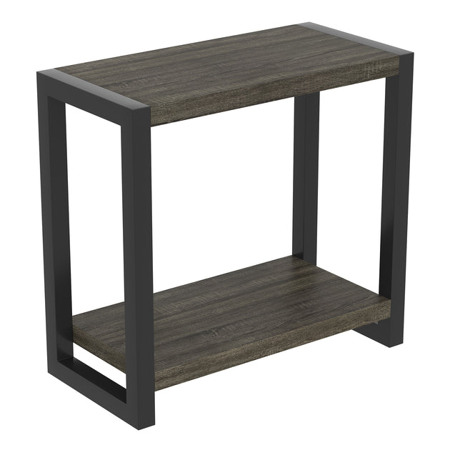 24" Classic Narrow Accent Table Dark Grey Hidden Storage Shelf