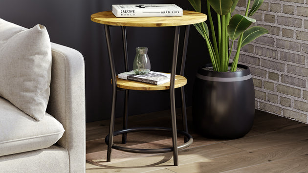 22" Round Side Table Brown Reclaimed Wood Black Metal