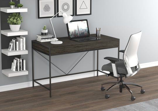 48" Modern Console Table 2 Drawers Dark Grey Wood Black Metal