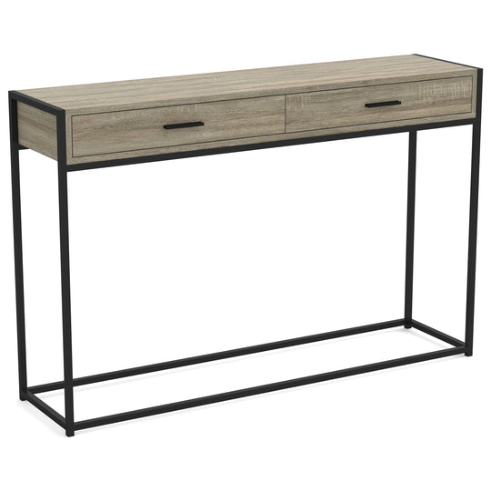48" Modern Console Table 2 Drawers Dark Taupe Black Metal