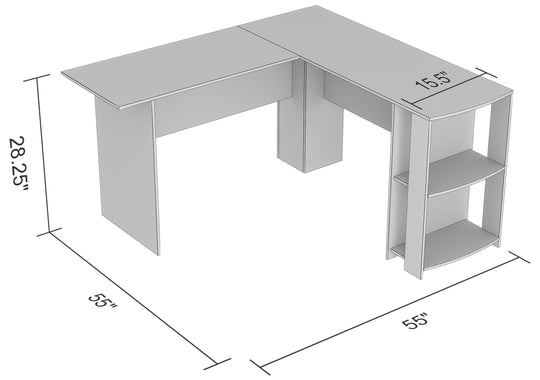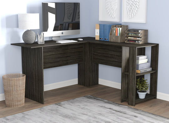 55" L-Shaped Corner Desk 2 Shelves Dark Grey