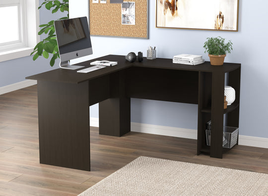 55" L-Shaped Corner Desk 2 Shelves Cappuccino