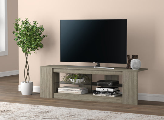 55" TV Stand Dark Taupe 2 Shelves Tempered Glass